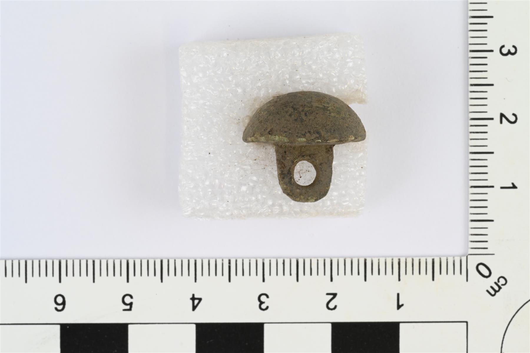 | Puolipallon muotoinen nappi. Taustapuolella kanta. | |