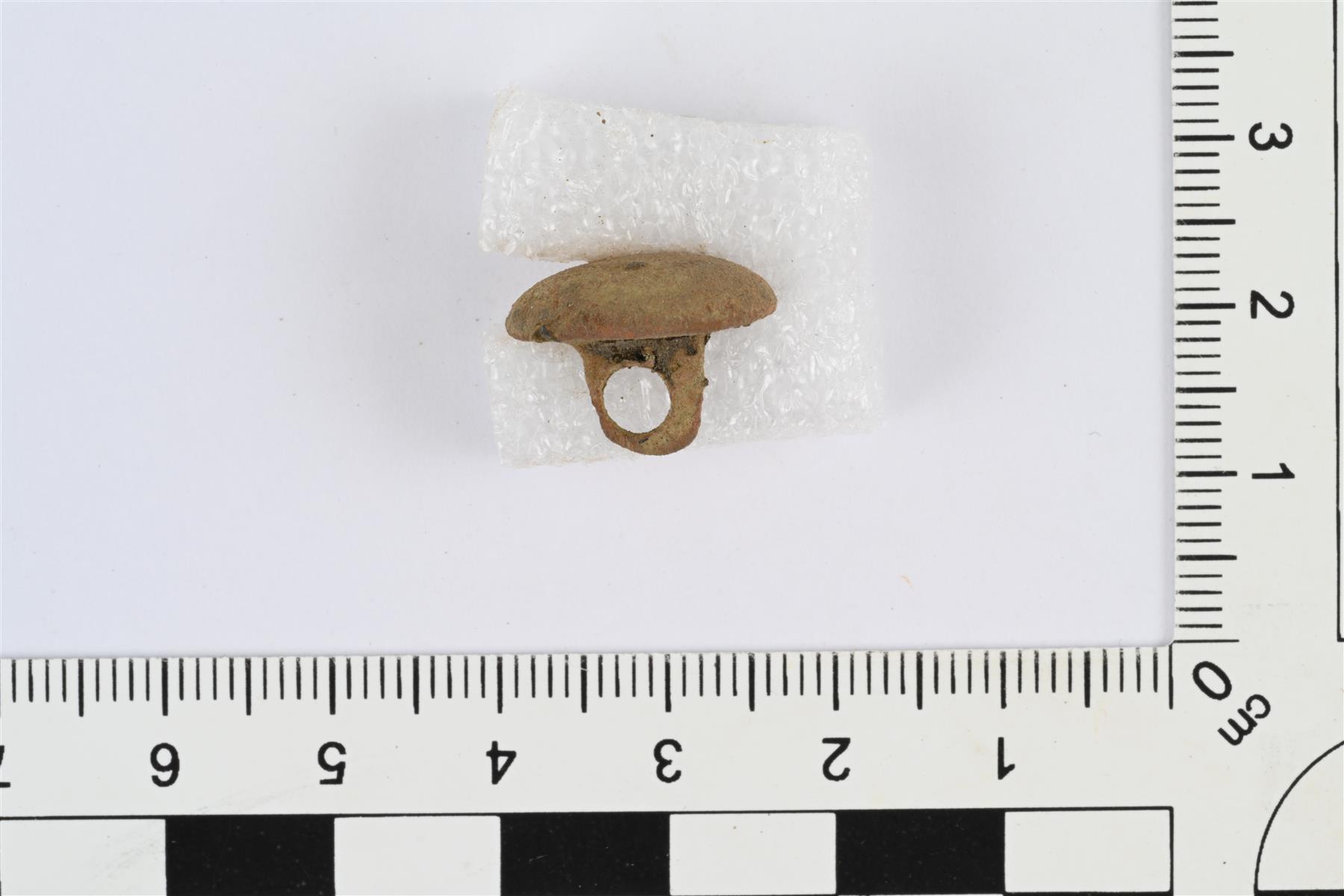 | Litistetyn puolipallon muotoinen nappi. Taustapuolella kanta. | |