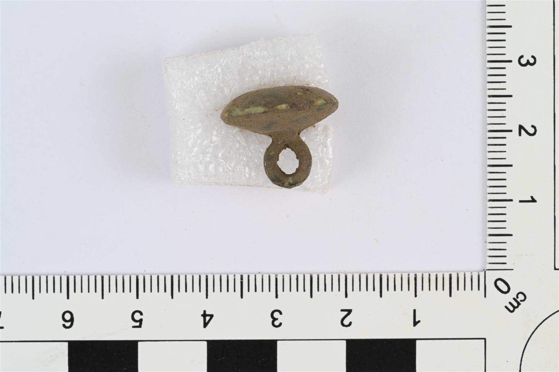 | Ontto linssinmuotoinen nappi, etu- ja taustapuoli kuperat. Taustapuolella lenkkimäinen kanta. | |
