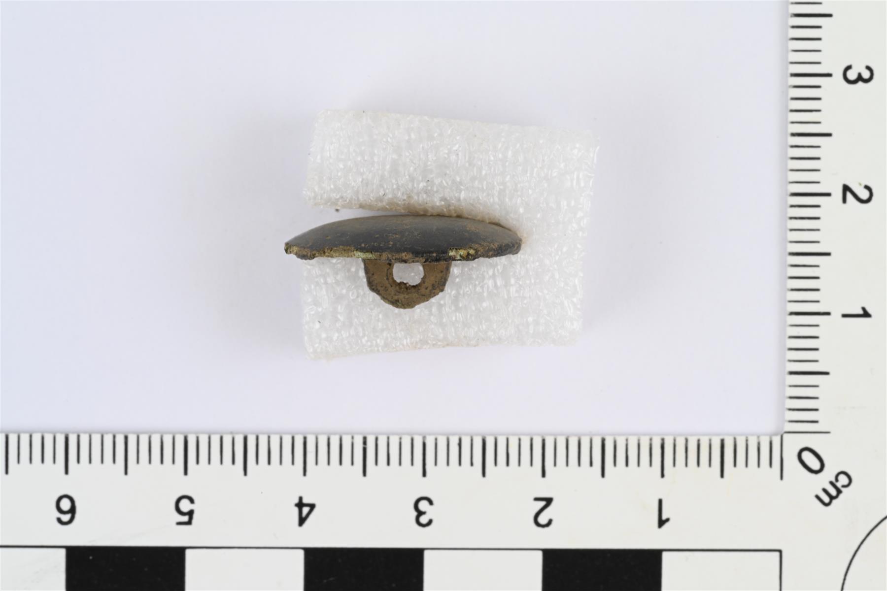 | Nappi, etupuoli kupera, taustapuoli kovera ja siinä kanta. Etupuoli lähes musta. | |
