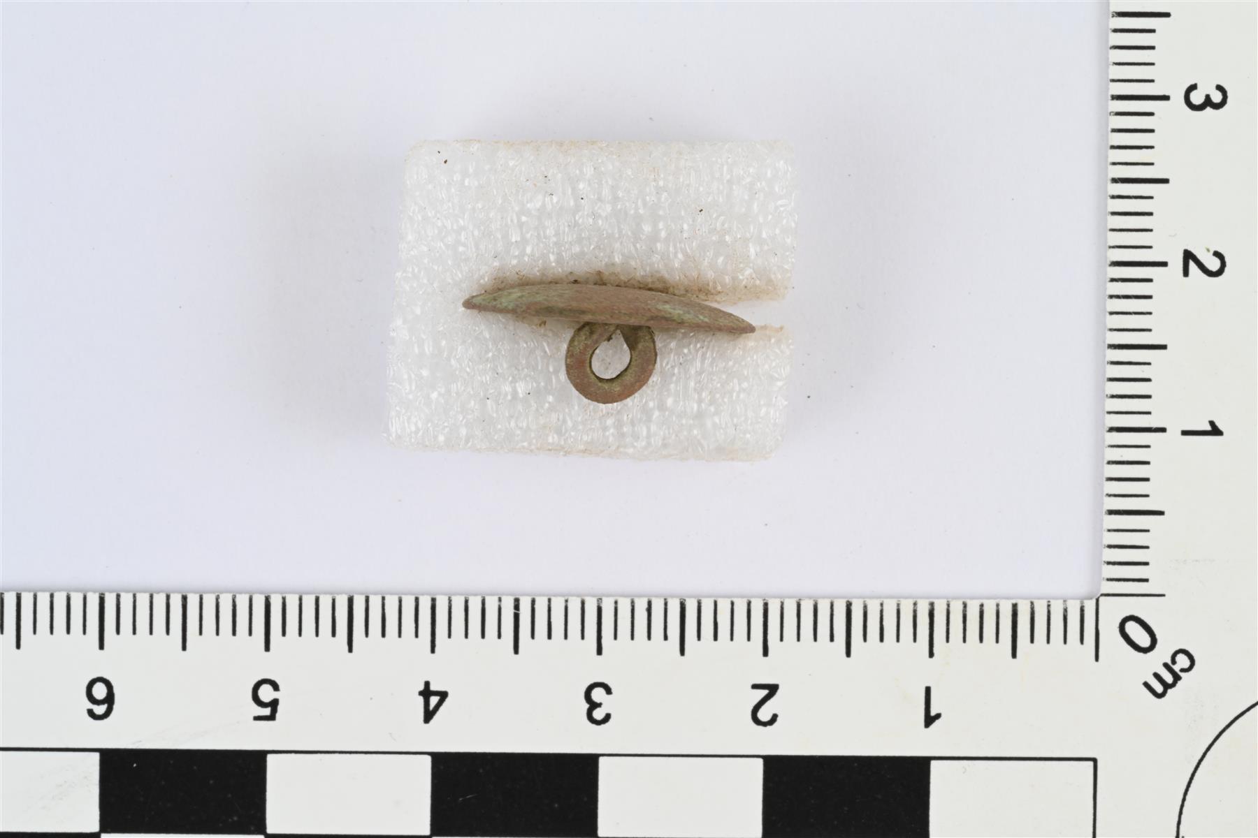 | Nappi, etupuoli hieman kupera, taustapuoli kovera ja siinä lenkkimäinen kanta. Lähes samanlainen kuin napit KM 46770:100-102. | |
