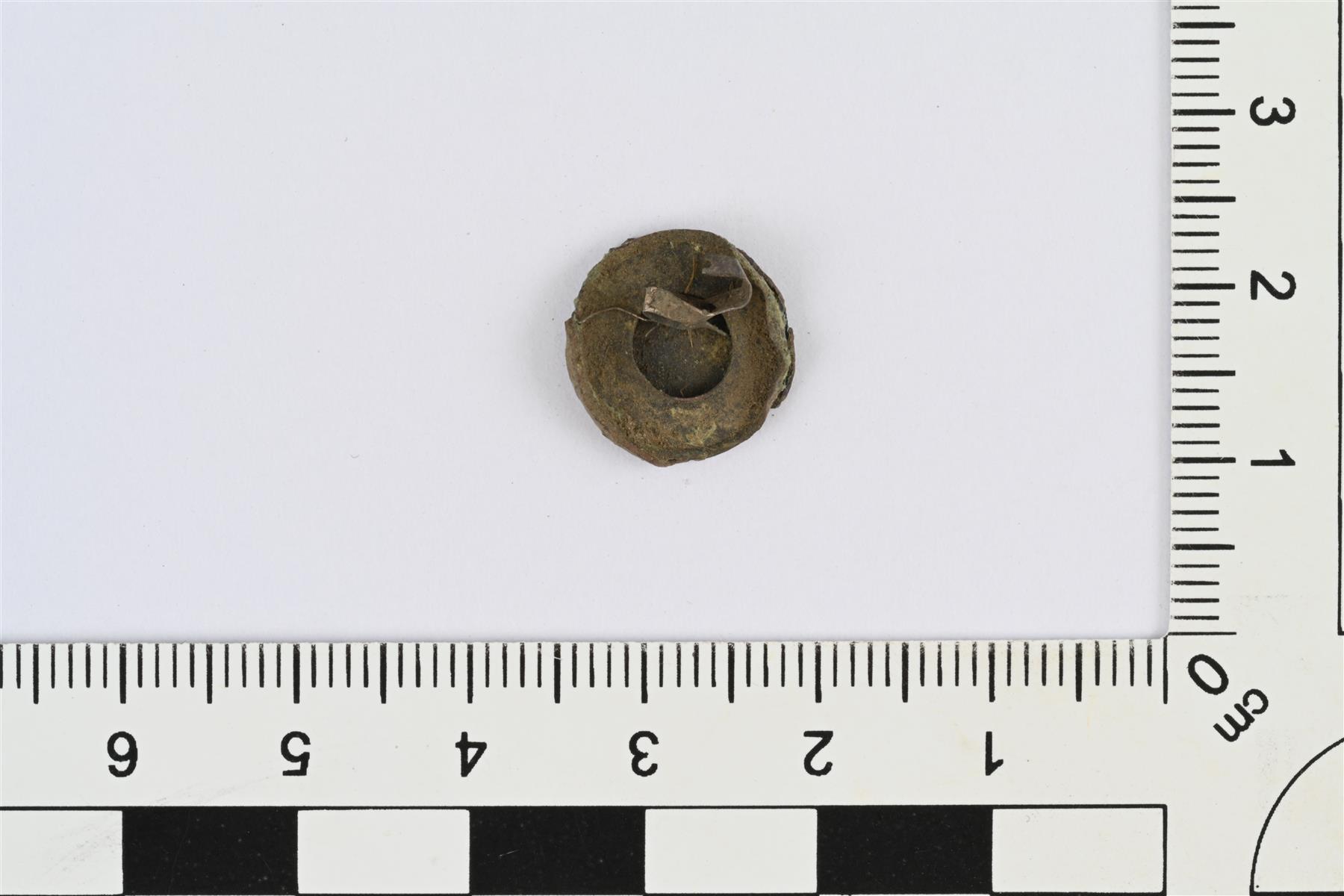 | Napin etuosa. Kuvattu taustapuolelta. Heidi Martiskainen 15.5.2024 KM46770:136_2_nappi |
