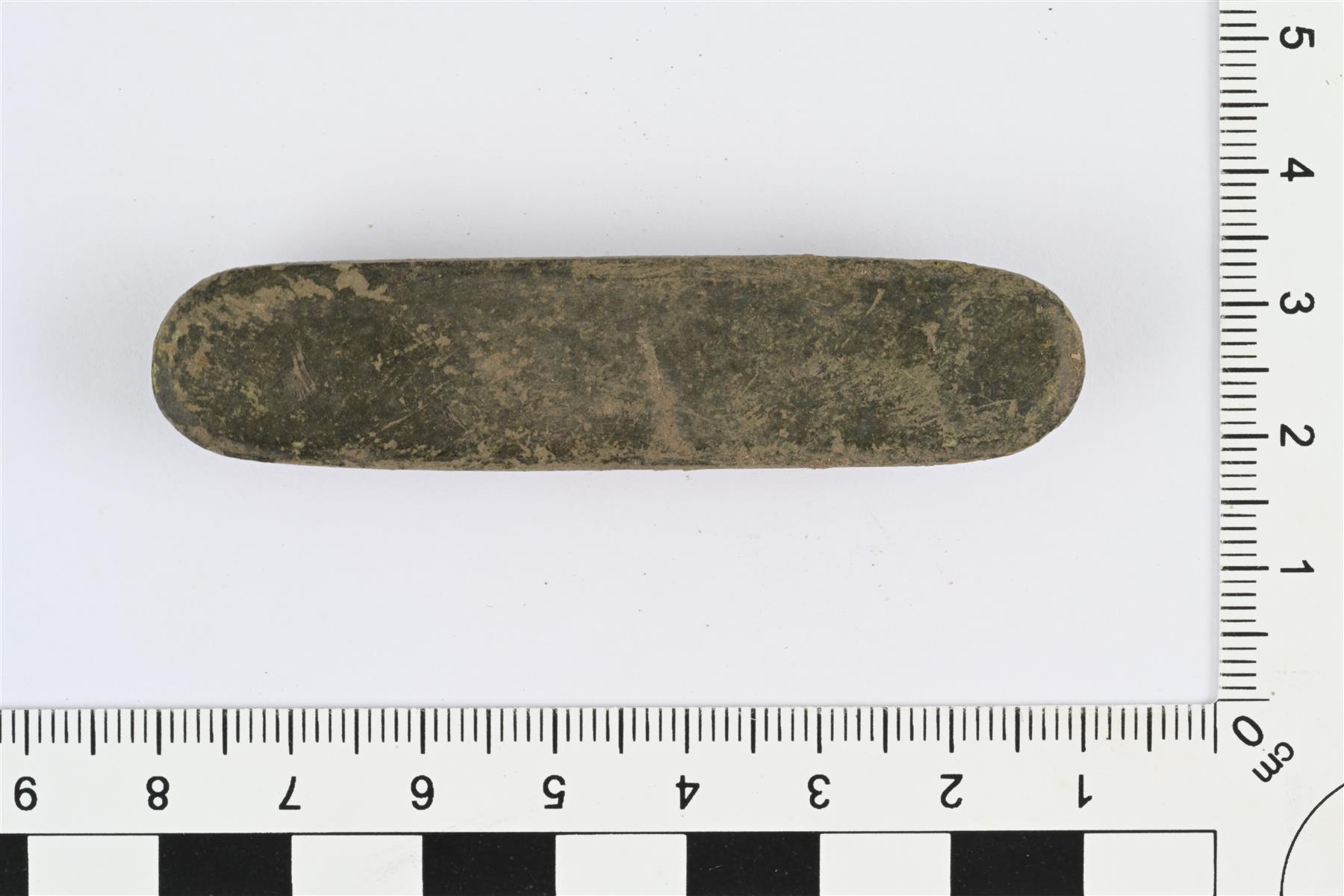 | Hela tai valjaskoriste. Pitkänomainen ja litteä, päistä pyöristetty, taustapuolella kummassakin päässä kiinnitystappi. | |