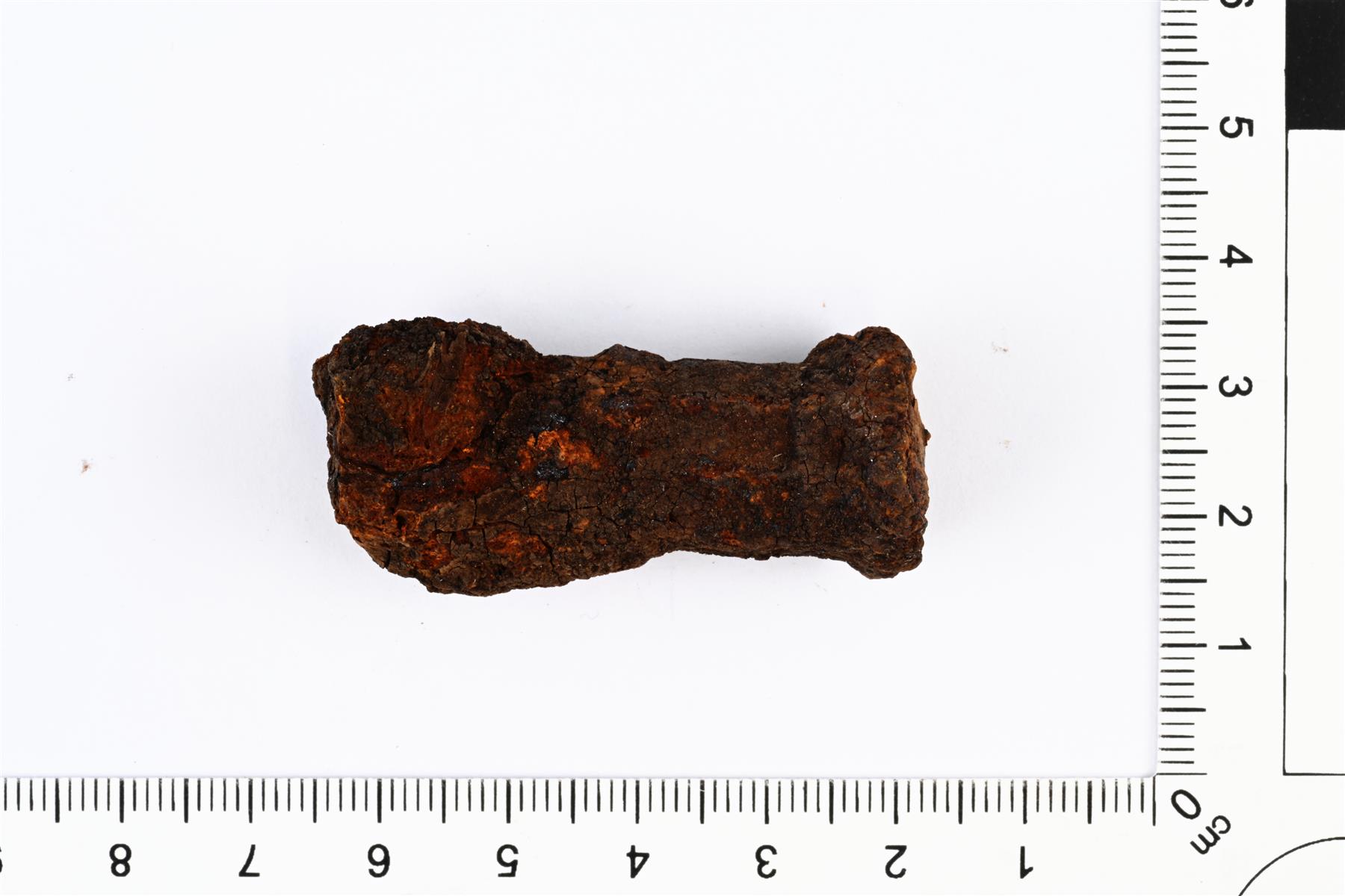 | Takorautaisen vartaan katkelma. Poikkileikkaus on pyöreähkö. Kanta levenee hieman sivuille | |