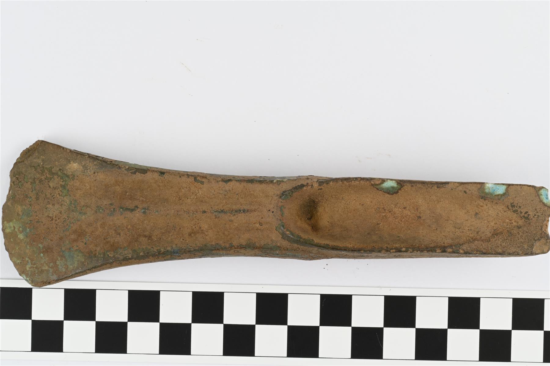 | Pronssinen olkakirves. Niukasti koristeltu työkirves. Käyttöjälkiä ei havaittu.