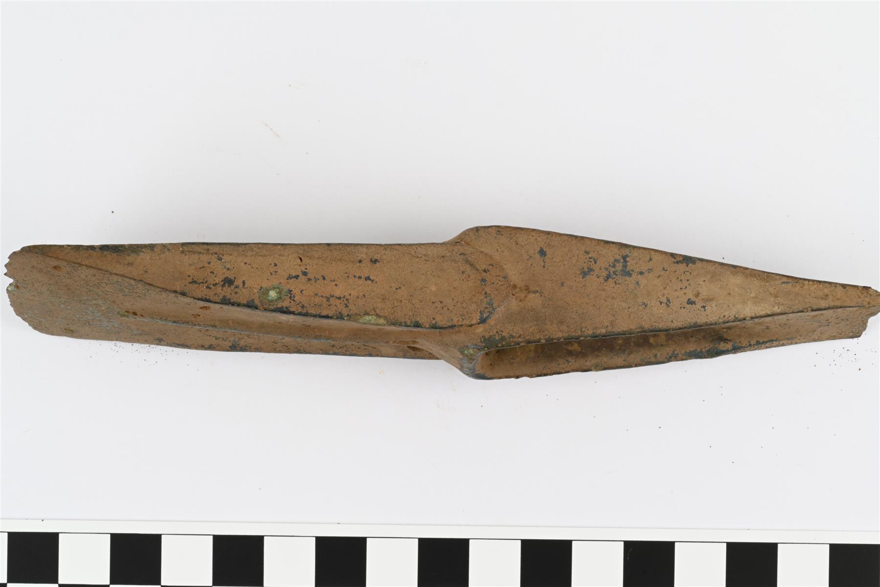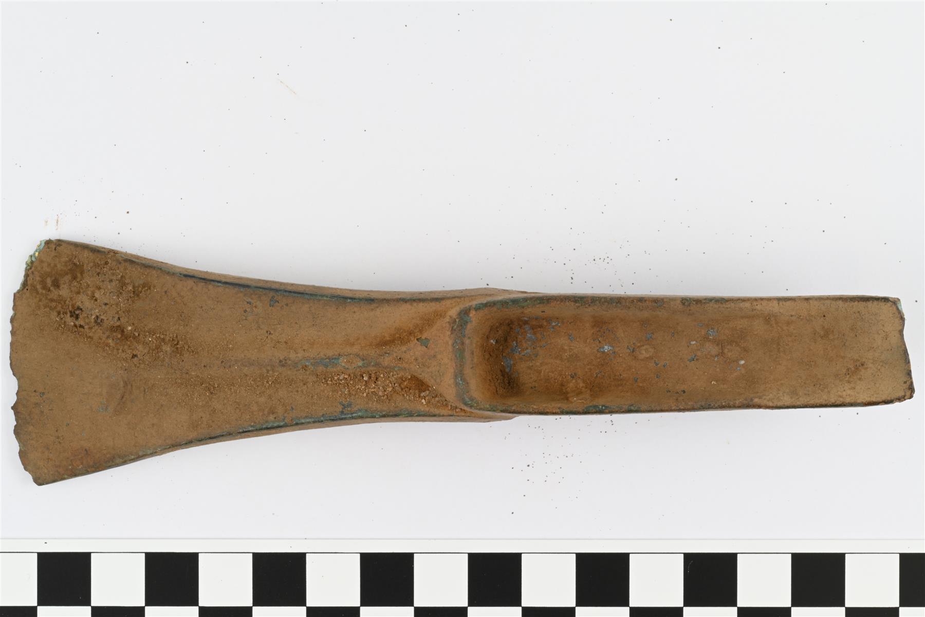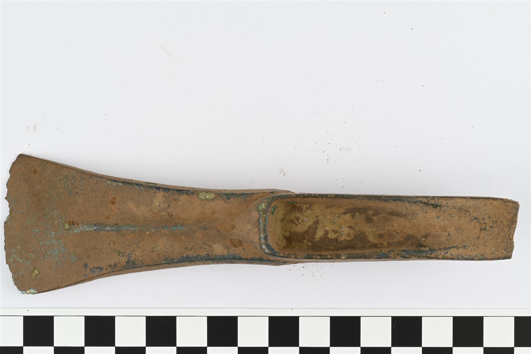| Pronssinen olkakirves. Koristekuvioton työkirves. Käyttöjälkiä ei havaittu.
