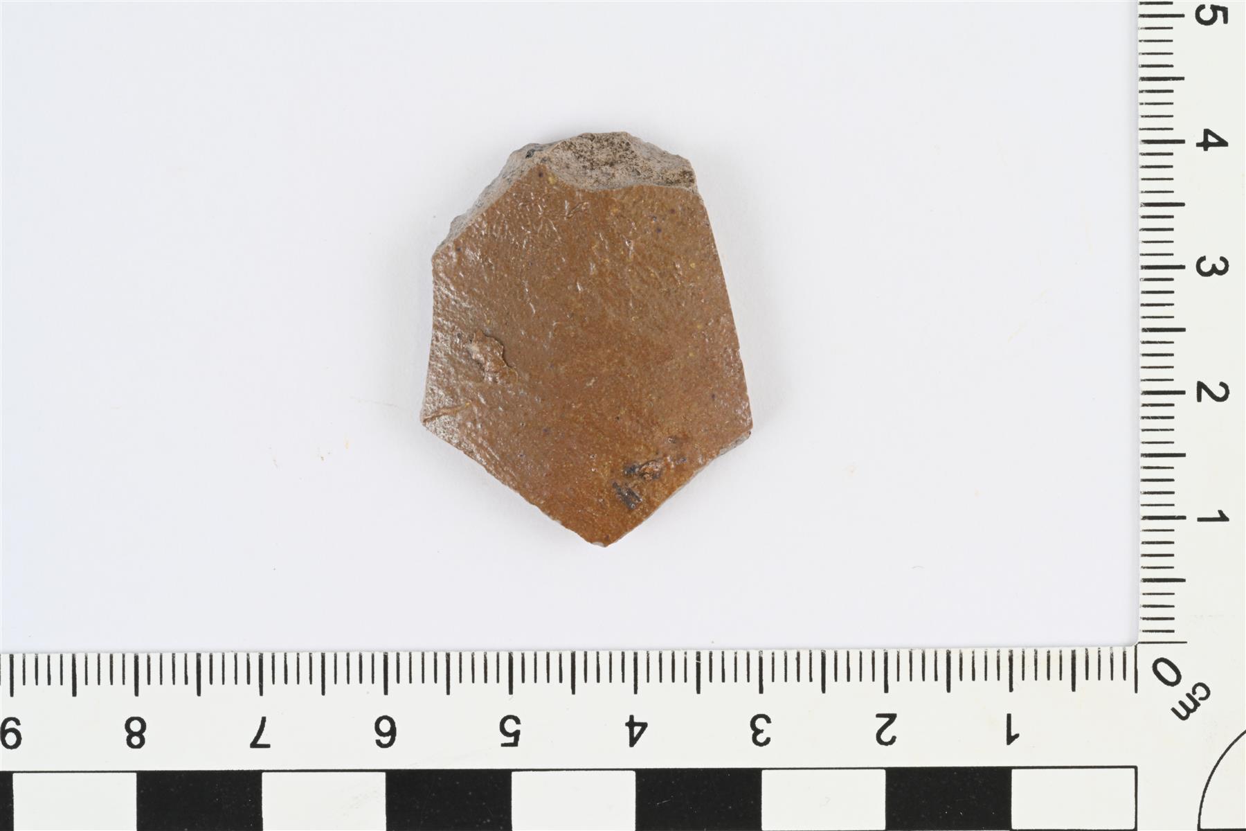 | Kylkipala. Ulkopinnalla ruskea saviliete ja suolalasite. Sisäpinta oranssinruskea. Massa harmaa. | |