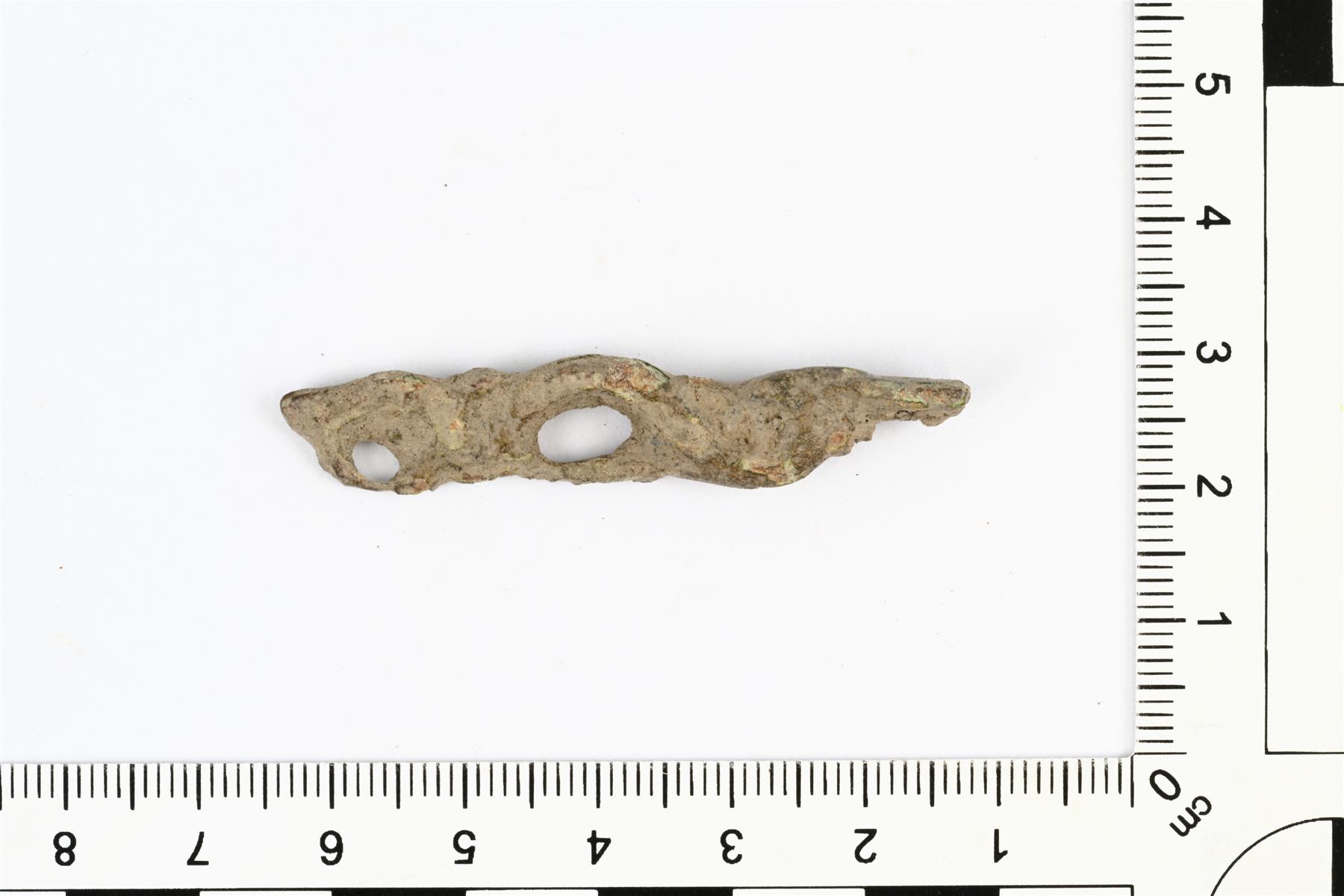 | Suoran koruesineen katkelma. Koristeluna kaksi ovaalia reikäkuviota. | |