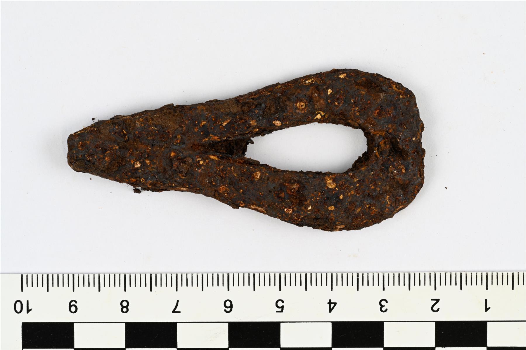 | Pisaranmuotoinen tulusrauta. Kapea pää on ahjohitsattu yhteen. | |