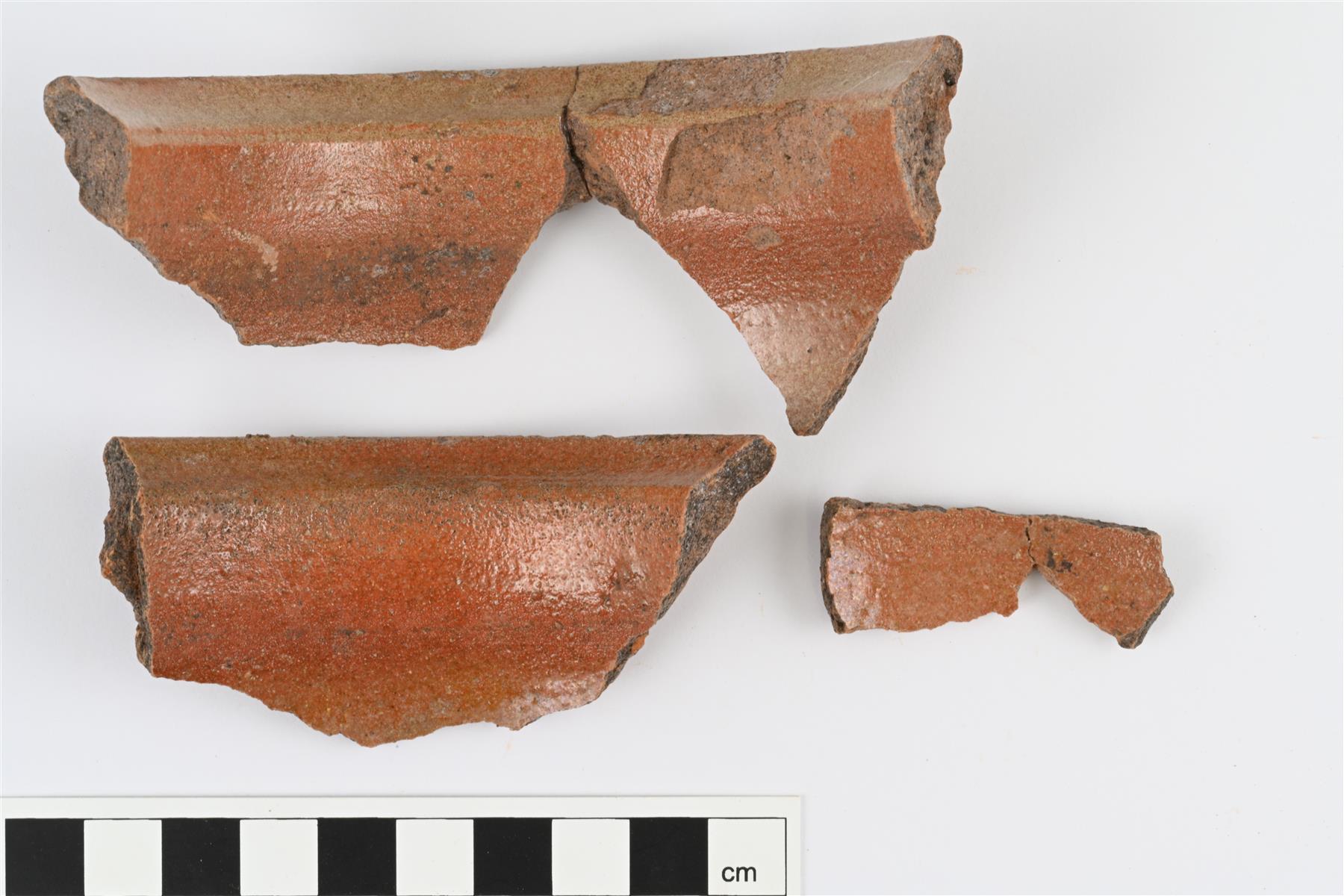 | Punasavisen kolmijalkapadan suureuna- ja kylkipaloja. Heidi Martiskainen 6.6.2024 KM46903:56_1_kolmijalkapata |