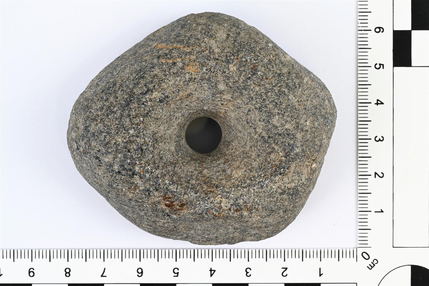 Kantikas ja litteä reikäkivi. Reikä on kairattu kummaltakin puolelta. | |