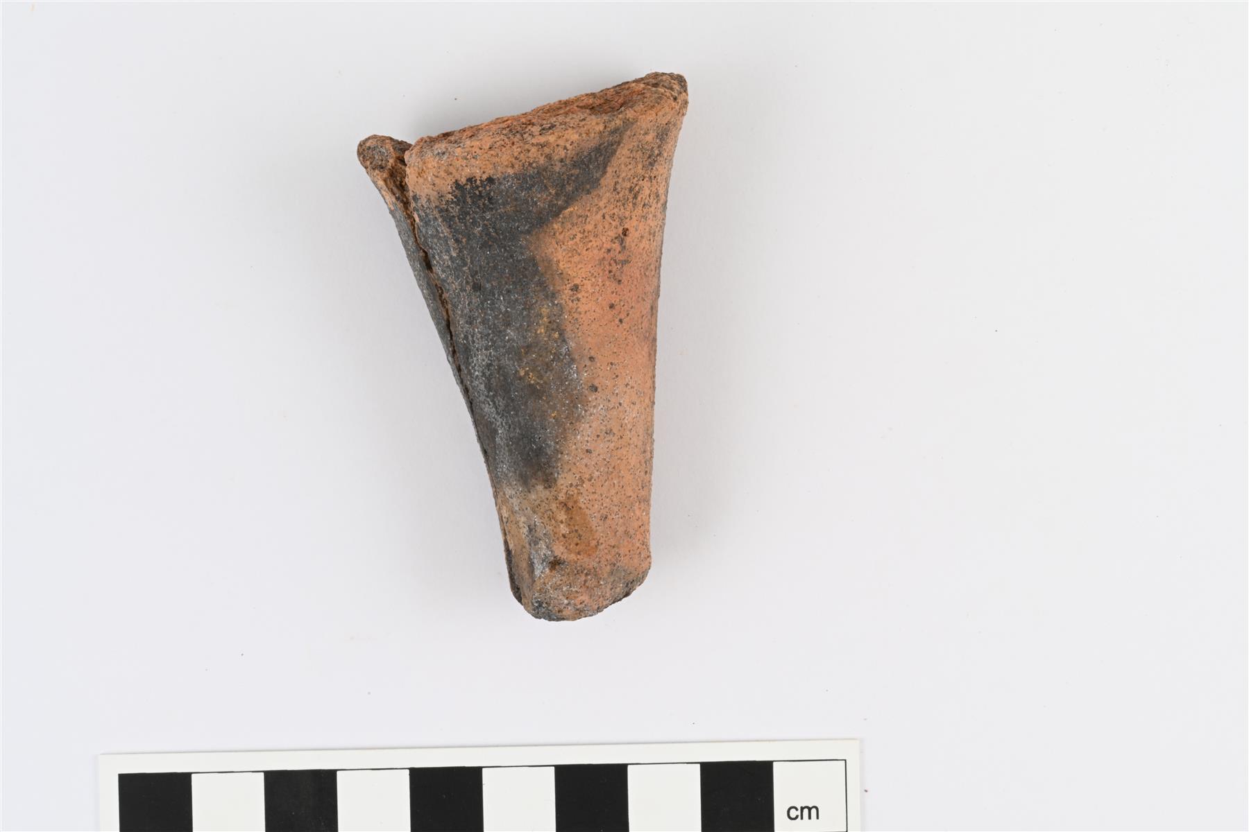 | Kolmijalkapadan jalan yhteensopivia katkelmia, palat liimattu yhteen. Jalka suora ja alaspäin suippeneva. Pinta osittain mustunut. | |