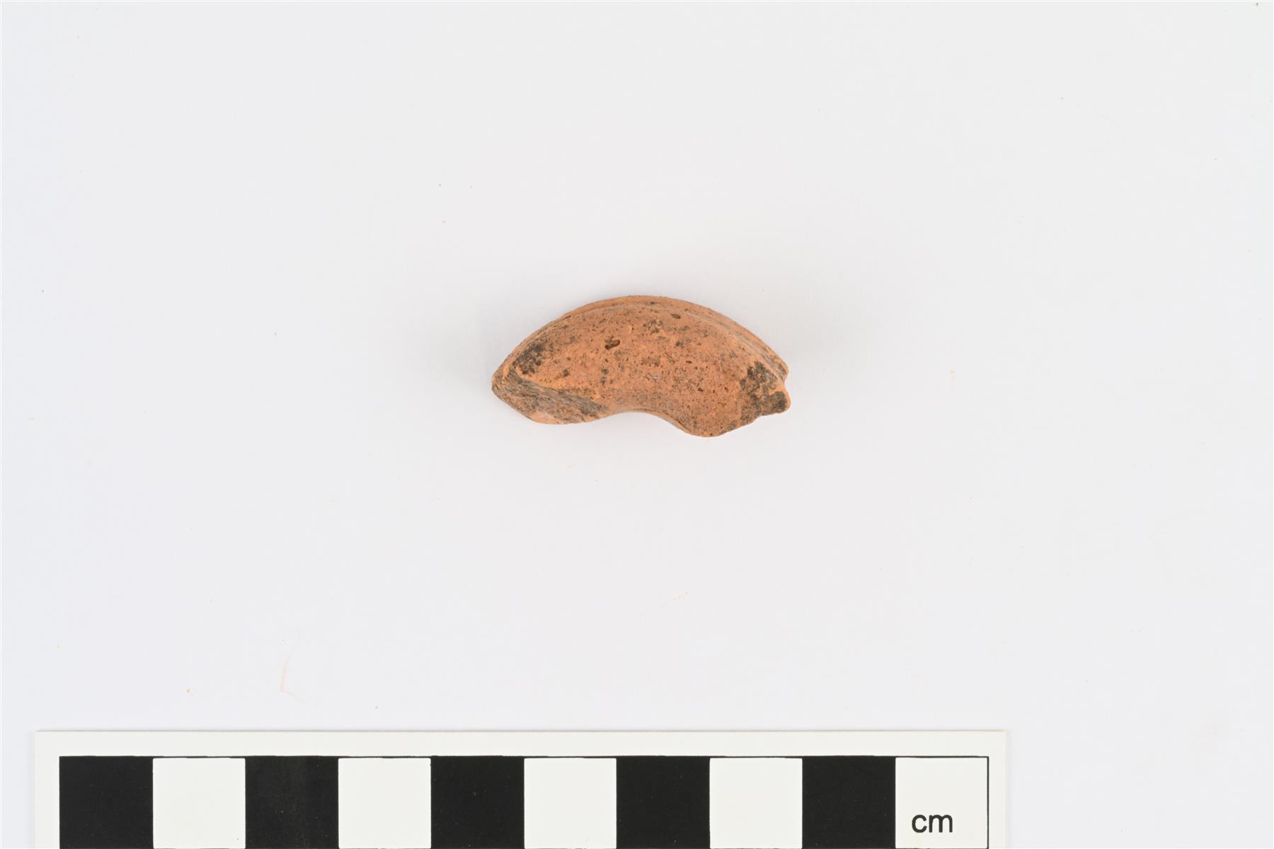| Pienen korvan katkelma. Ulkokaarella loiva ura. Ei lasitetta. | |