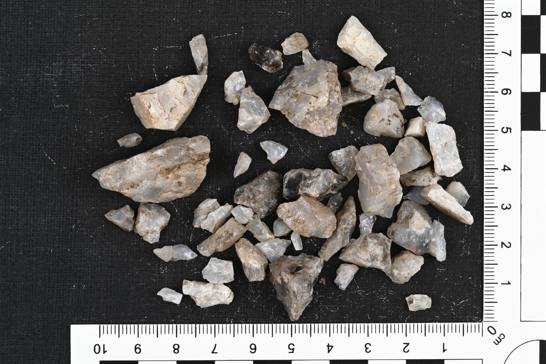 | Teräväsärmäisiä kvartsi-iskoksia ja kvartsimurskaa. | |