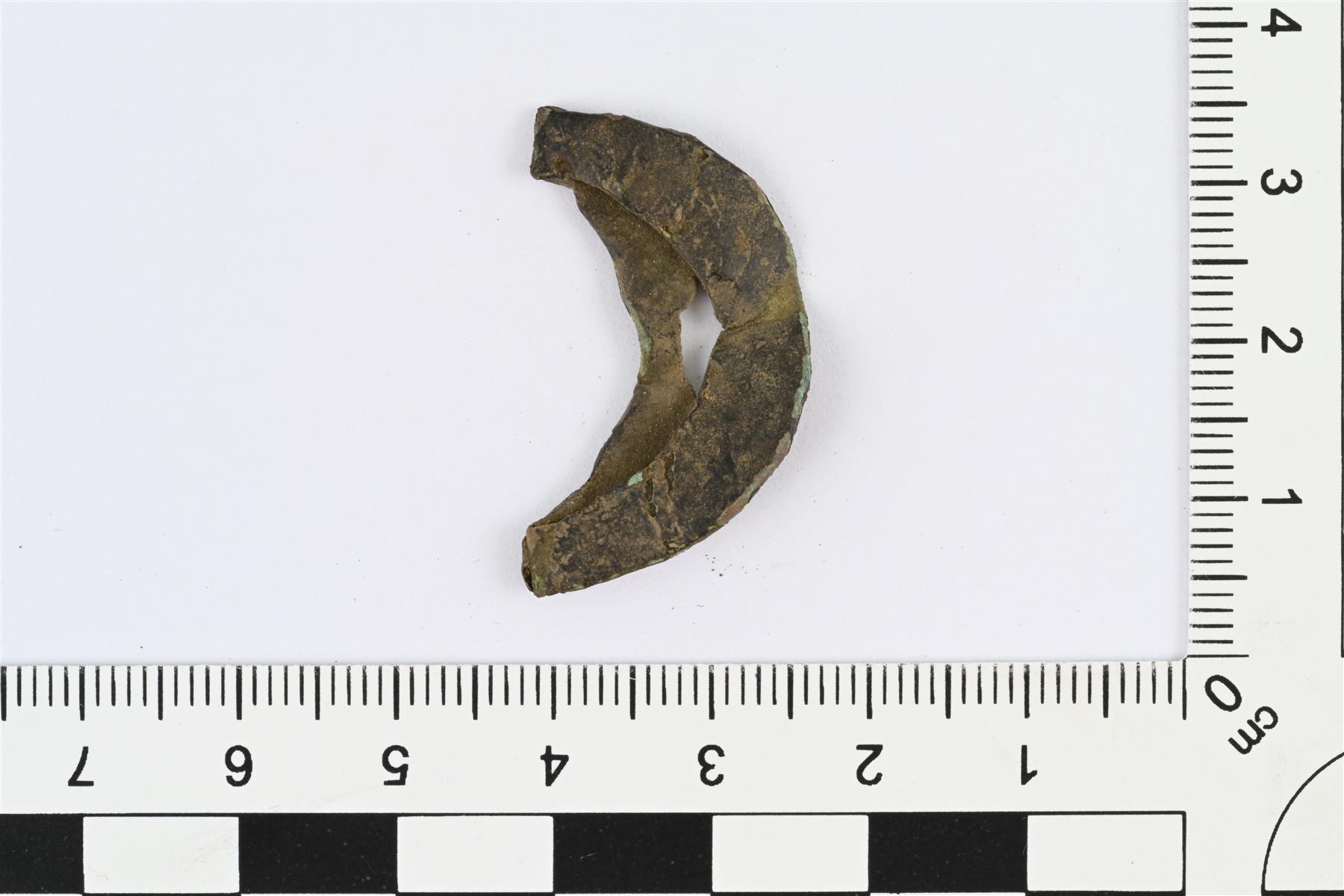 | Kehäsoljen kehä. Taittunut kaksin kerroin. Etupuoli hieman kupera. Kehässä kavennettu kohta neulaa varten. | |