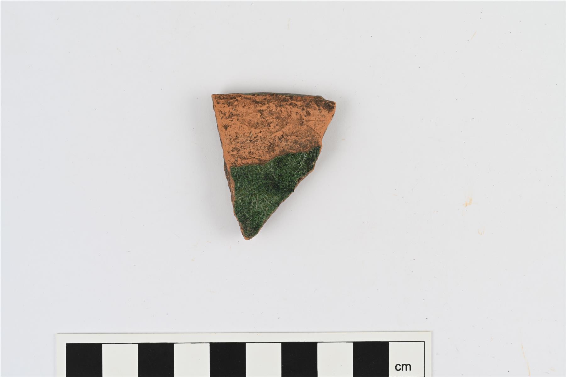 | Vadin suureunapala. Reunan ulkopinnalta lohjennut paksunnos. Sisäpinnalla vihreä lyijylasite. | |