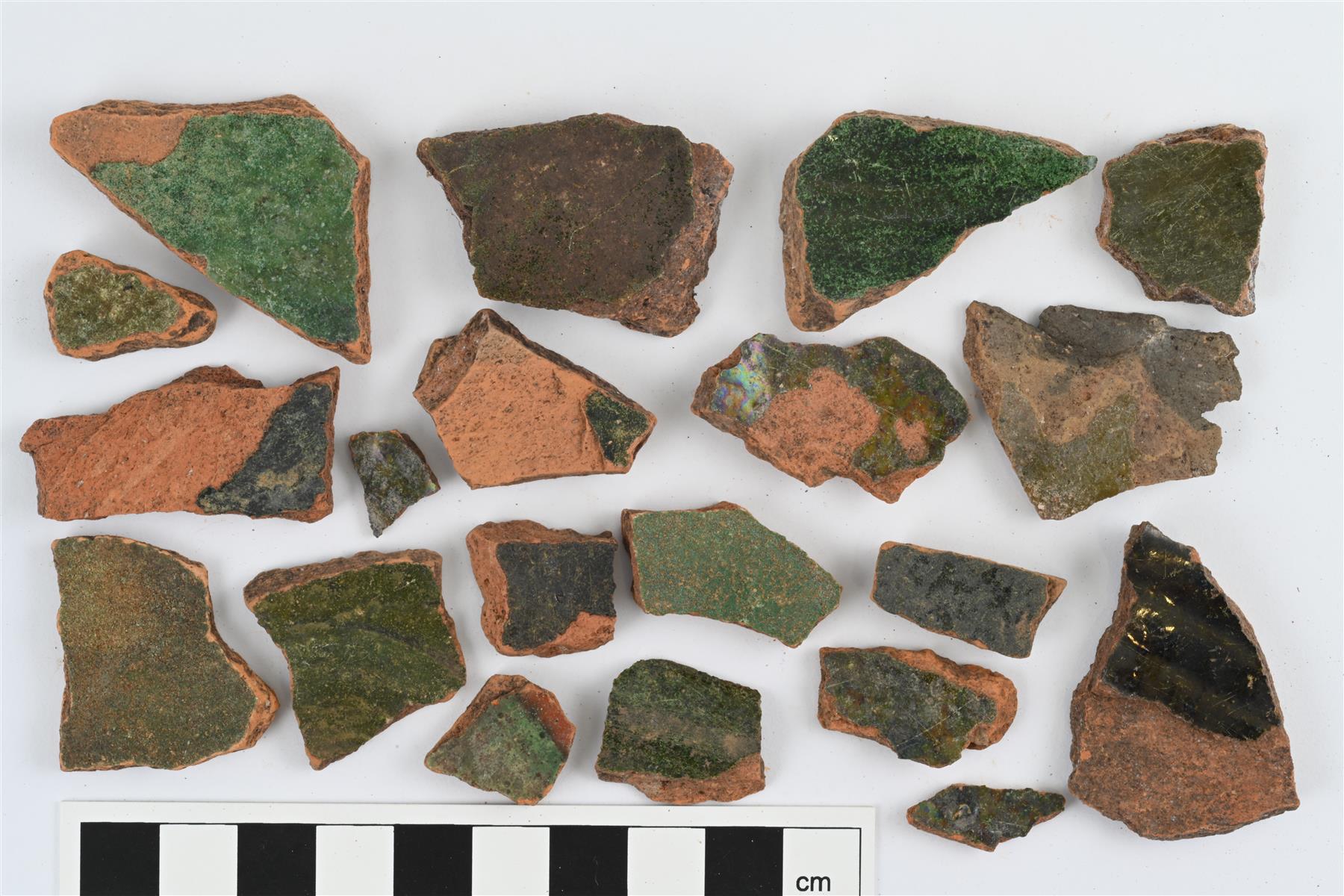 | Kylkipaloja eri astioista. Sisäpinnalla vihreä lyijylasite. | |
