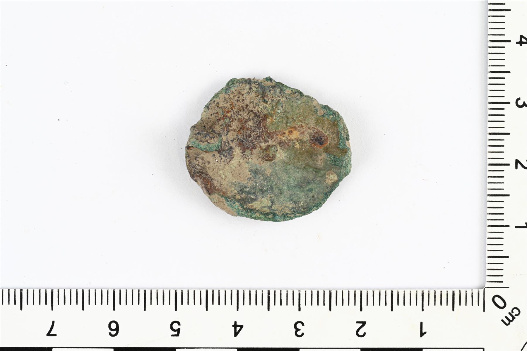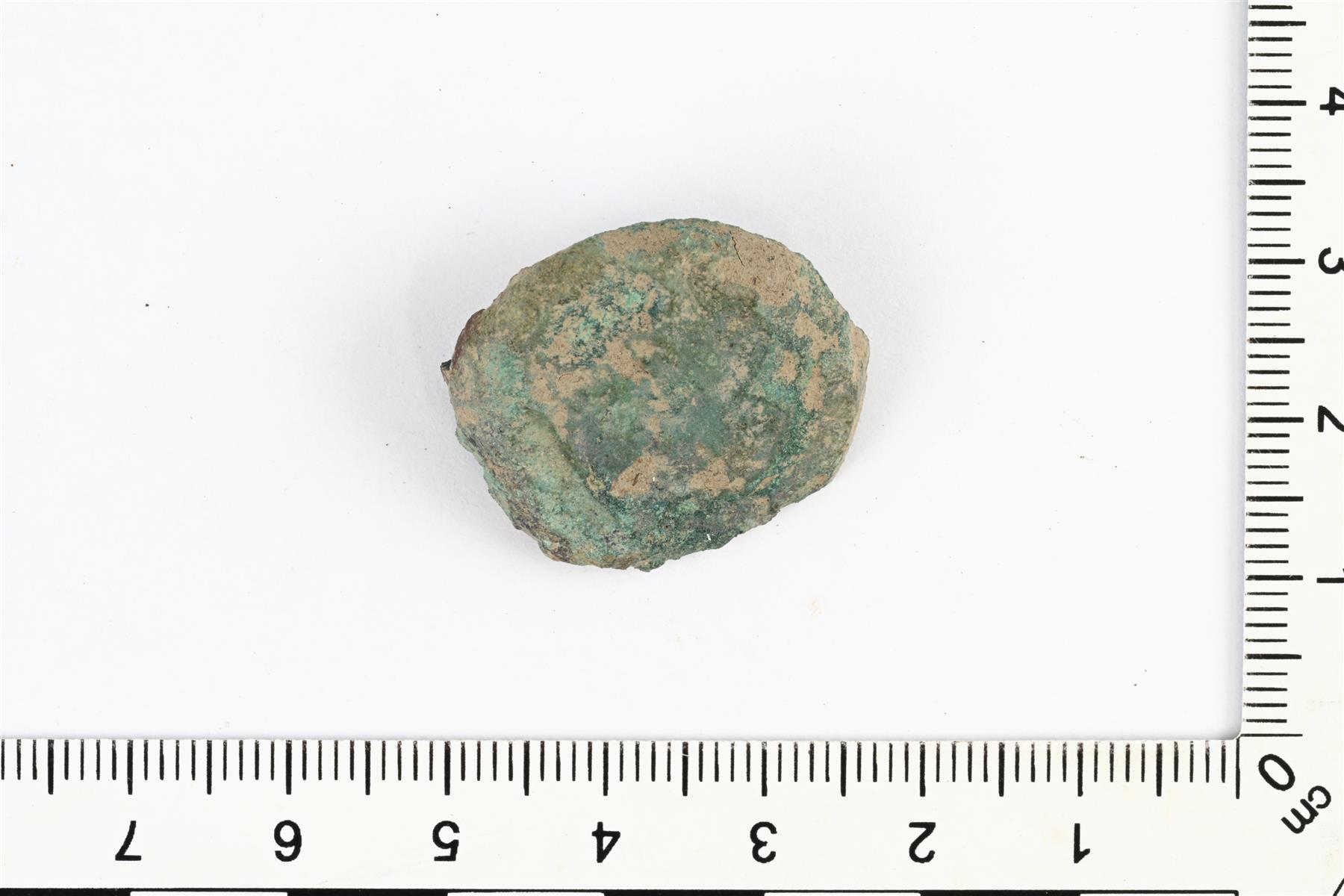 | Jossain määrin sulanut pyöreä levysolki. Taustapuolella on osittain säilynyt neulakota. Vrt. Kivikoski Abb. 411 ja 412. | |