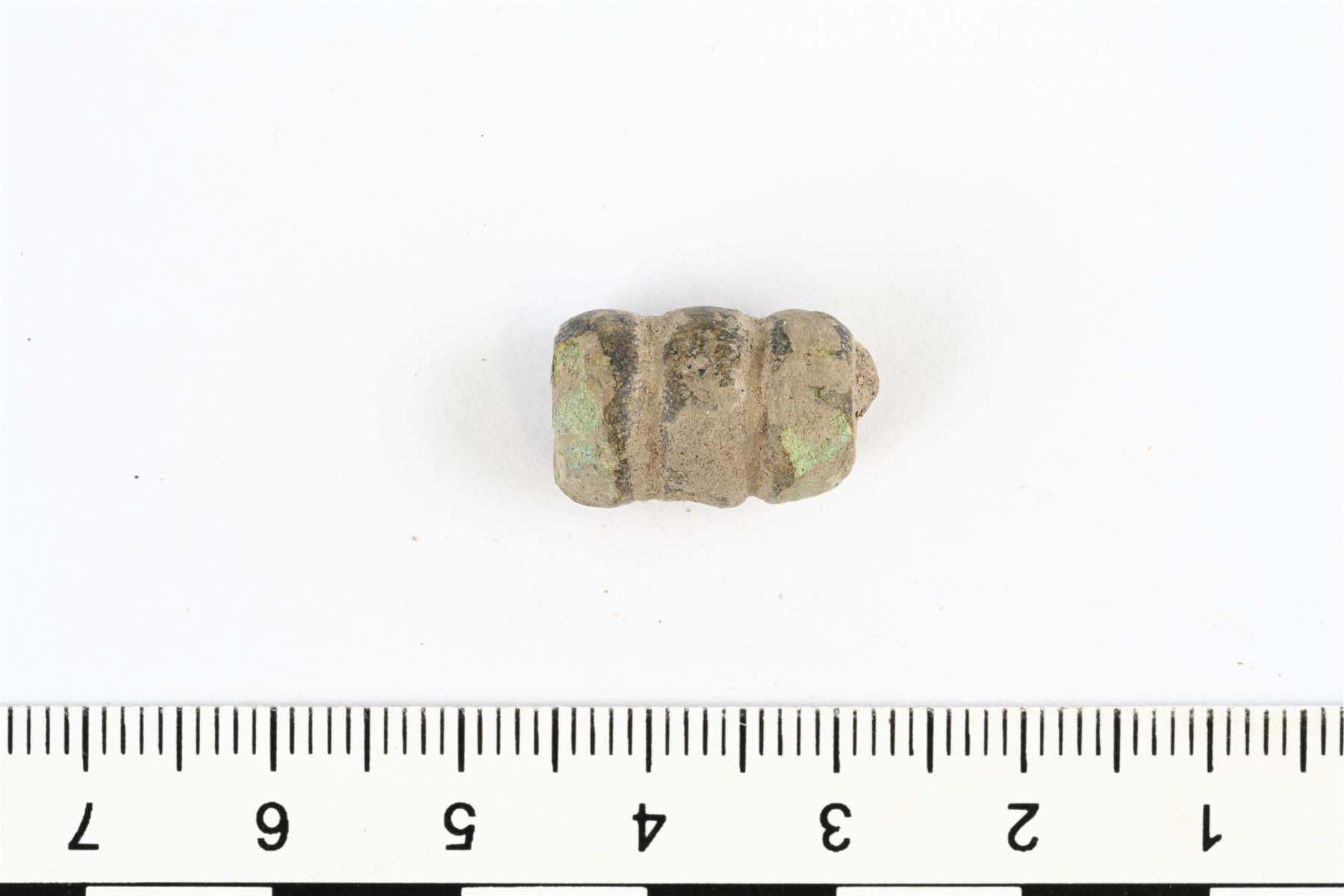 | Kolmelohkoinen sarjahelmi. Pinta on kulunut. | |