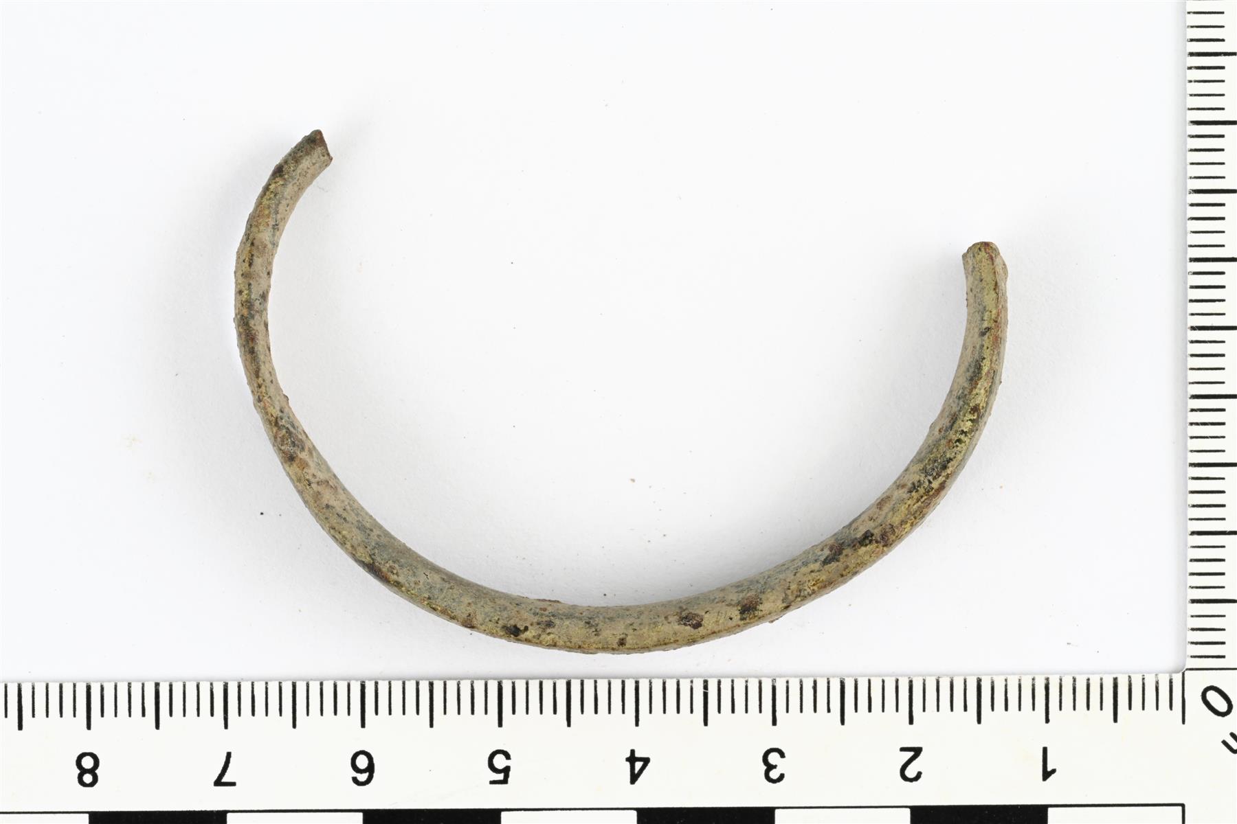 Kaareva kupariseosesineen katkelma. Etupuoli on suora ja taustapuoli kupera. Kapenee päätyjä kohti. | |