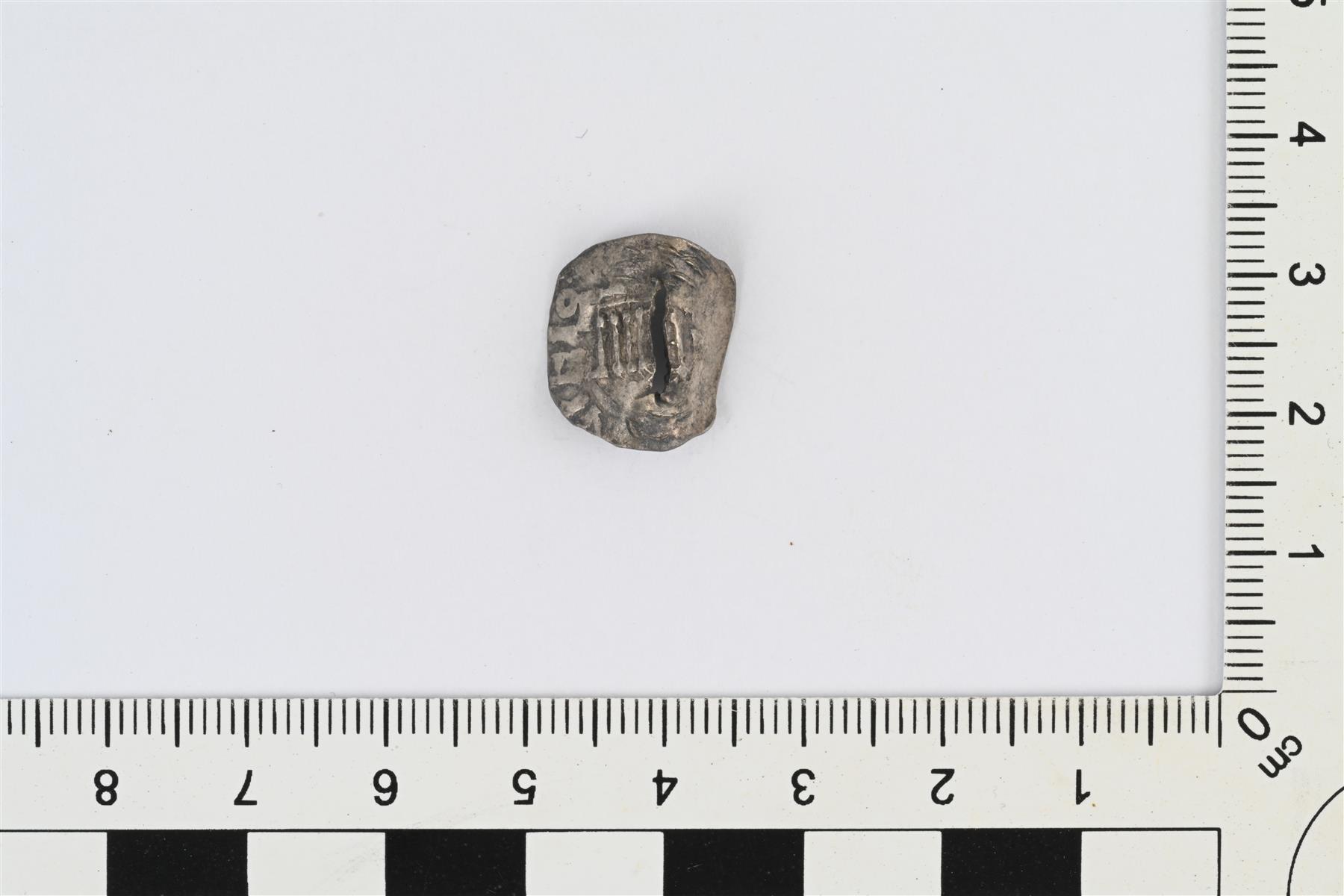 | Penninki, Konrad II tai kölniläisen penningin jäljitelmä, noin 1036 eteenpäin, vrt. Häv. 247a. Taitettu, murtunut keskeltä. | |