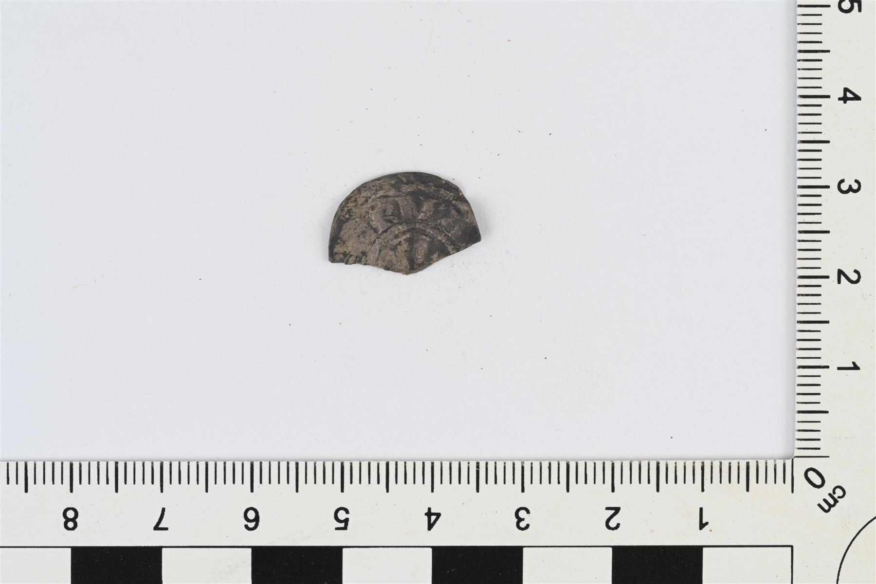 | Kölniläisen penningin jäljitelmä, Westfalen (?), 1000-luvun jälkipuoli. Katkelma, noin ½ rahasta. | |