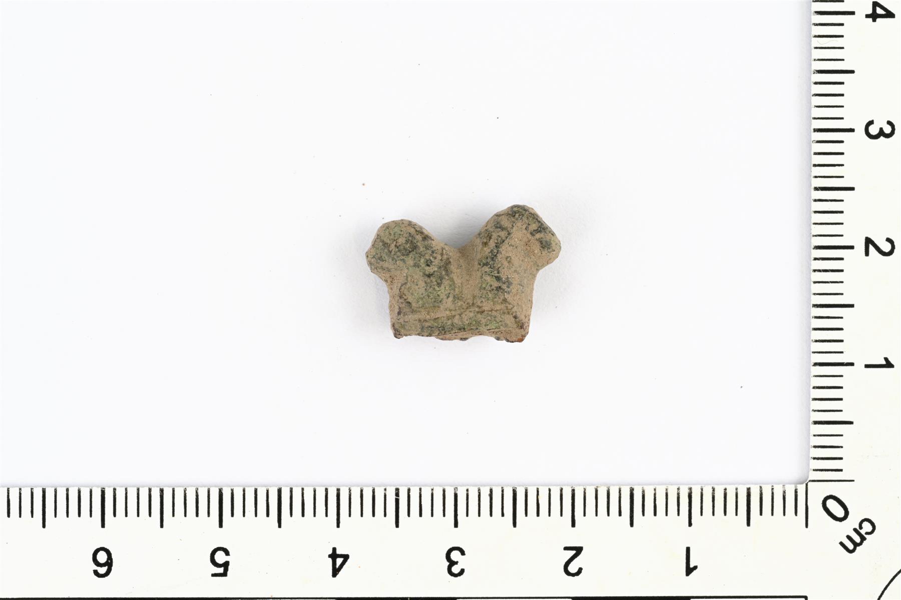 | Pöytäveitsen päätehela. Pääty jakautuu kahteen kaarevaan osaan. Ruodosta on säilynyt pieni jäänne. | |