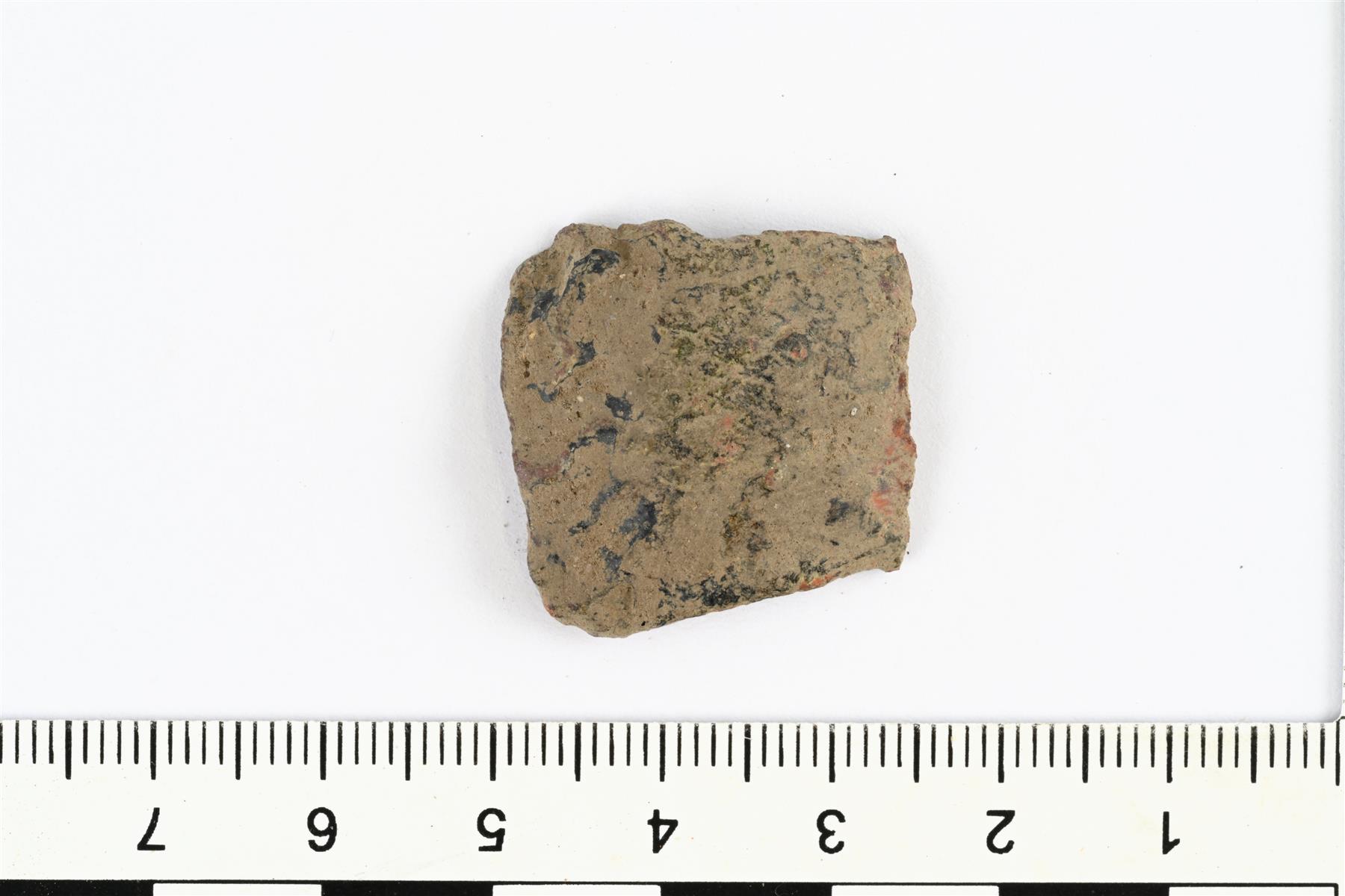 | Massiivisen rannerenkaan katkelma. Etupuoli on kupera ja taustapuoli on suora. Pinta on hyvin kulunut. | |