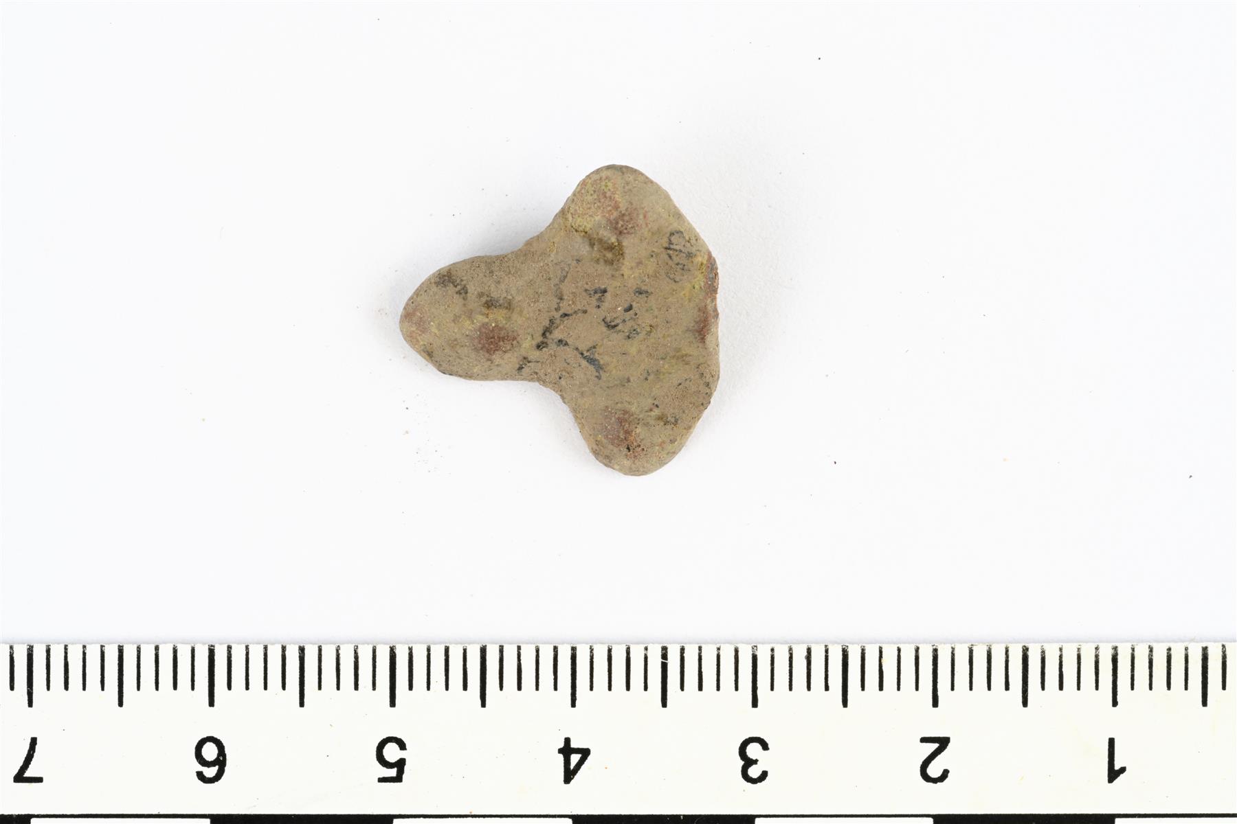 | Tasavartisen soljen päätykatkelma. Pinta on melko kulunut. Taustapuolella on neulakodan jäänne. | |