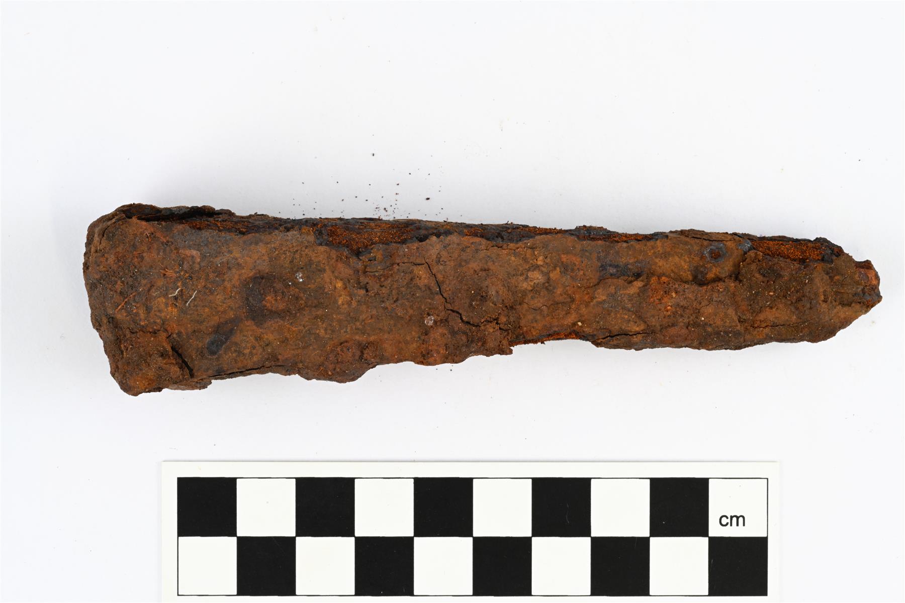 | Kokonaisena säilynyt rautakiila. Poikkileikkaukseltaan neliömäinen. Todennäköisesti kivenhalkaisukiila. | |