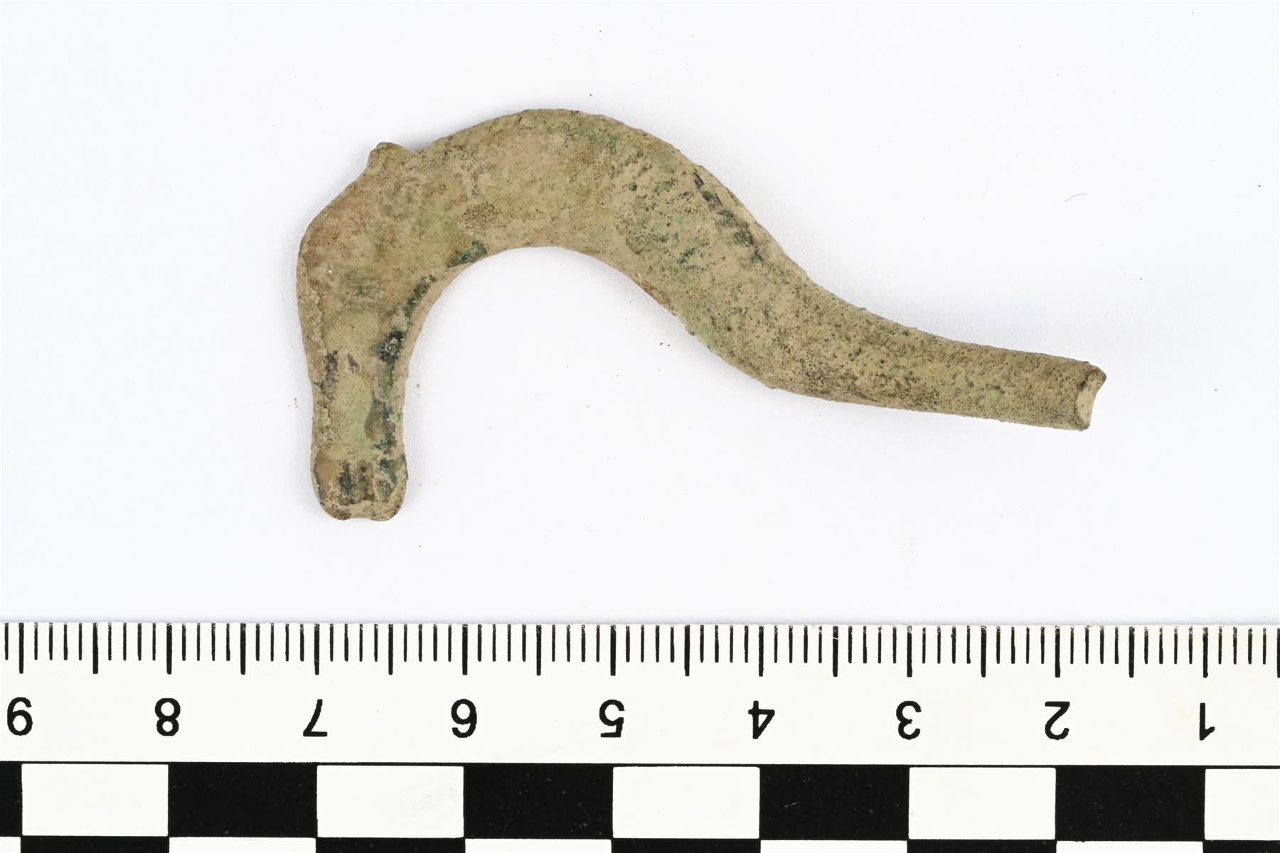 | Kupariseosesineen katkelma. Toisessa päässä on käärmeen tai hevosen pää, joka on muodoltaan melko yksinkertainen. | |
