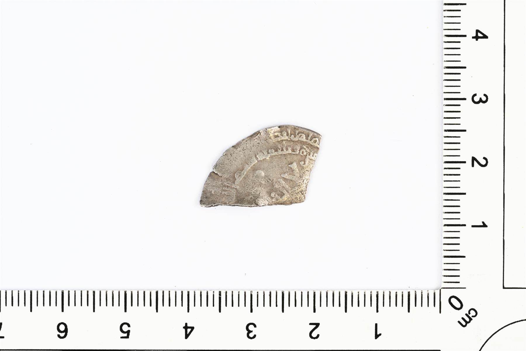 | Samanidi-dirhemin katkelma. Nasr ibn Ahmad, Ash-Shash 913-942 (AH 301-331), lyöty 320-luvulla, eli n. 932-941 jaa. | |