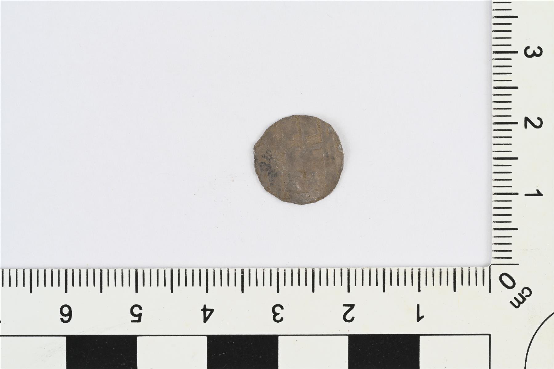 | Samanidit, Ahmad ibn Ismail (kalifi al-Muqtadir), dirhemi 908–913 (AH 295–301). Muokattu penningin kokoiseksi, vain keskiosa jäljellä. | |