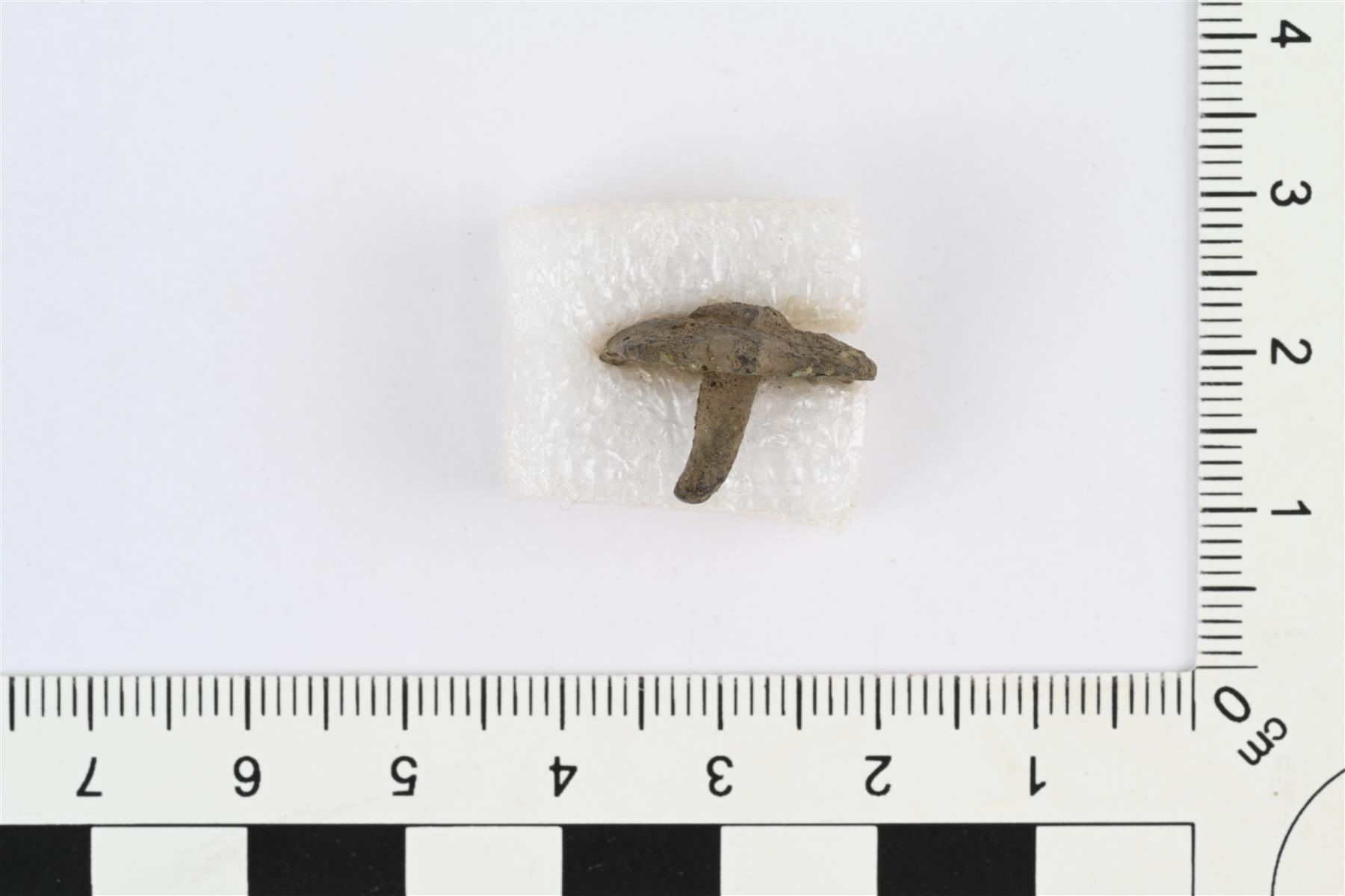 | Vyön- tai hihnanhela. Neliönmuotoinen, kulmat pyöristetyt, sivujen keskellä pienet ulokkeet. Taustapuolella kiinnitystappi. | |