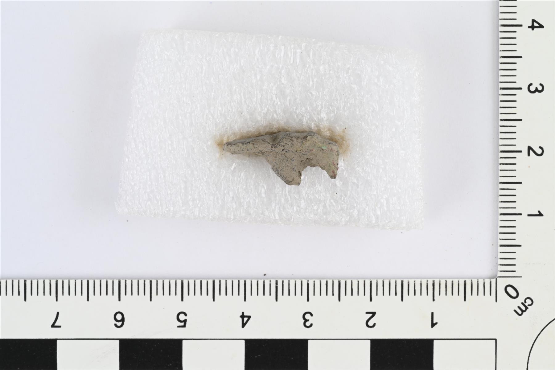 | Mahdollinen pyöreän kupurasoljen katkelma. Taustapuolella neulanpidikkeen jäännös. | |