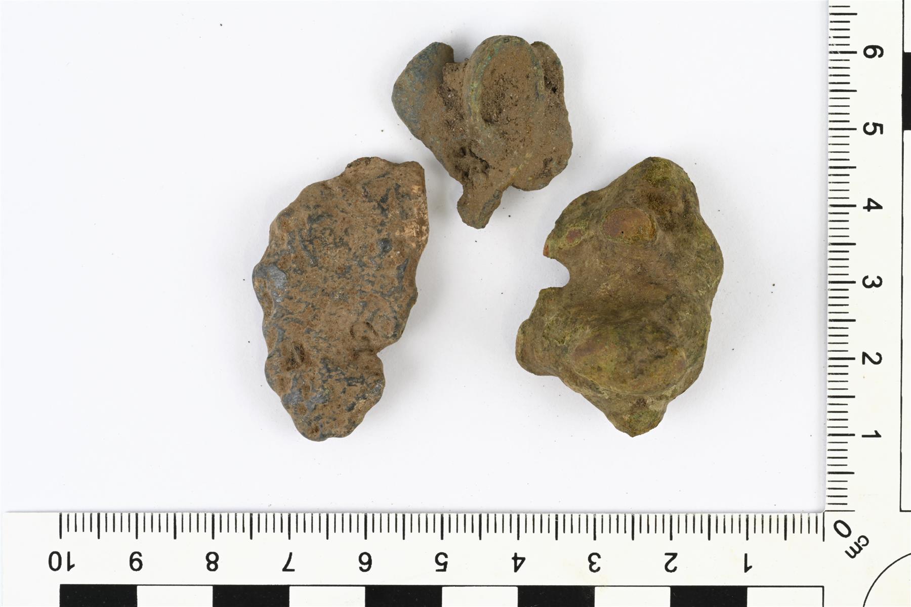 | Sulaneen kupariseoksen paloja. Jussi Moisio 10.9.2024 KM47303:1_1_sulanut aines |