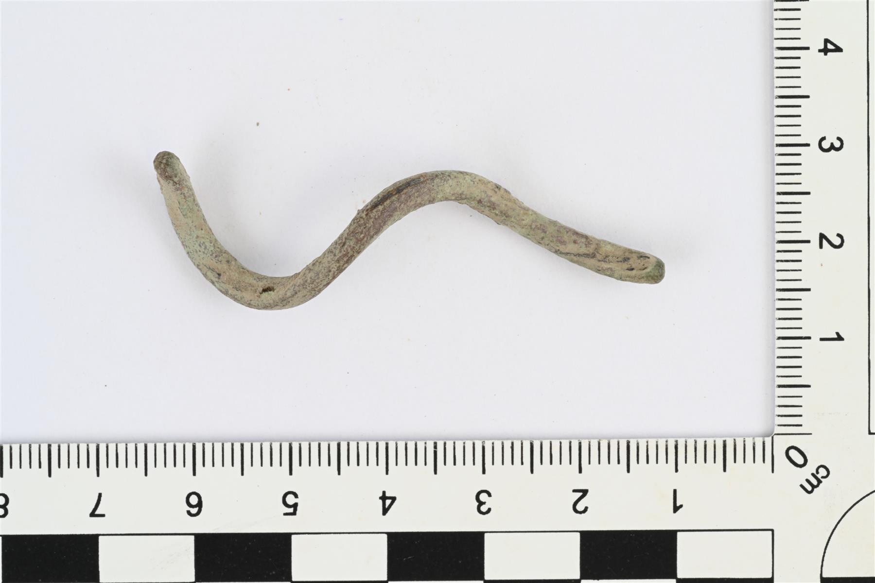| Kiemuraiseksi väännetty kupariseosvartaan katkelma. | |