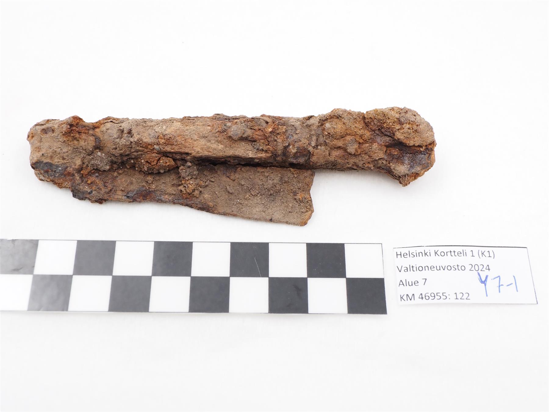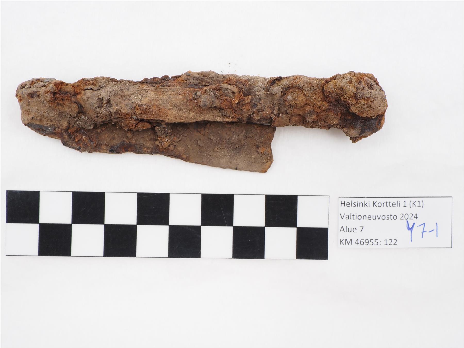 | Kokonainen rautainen partaveitsi. Kahva orgaanista materiaalia. | |