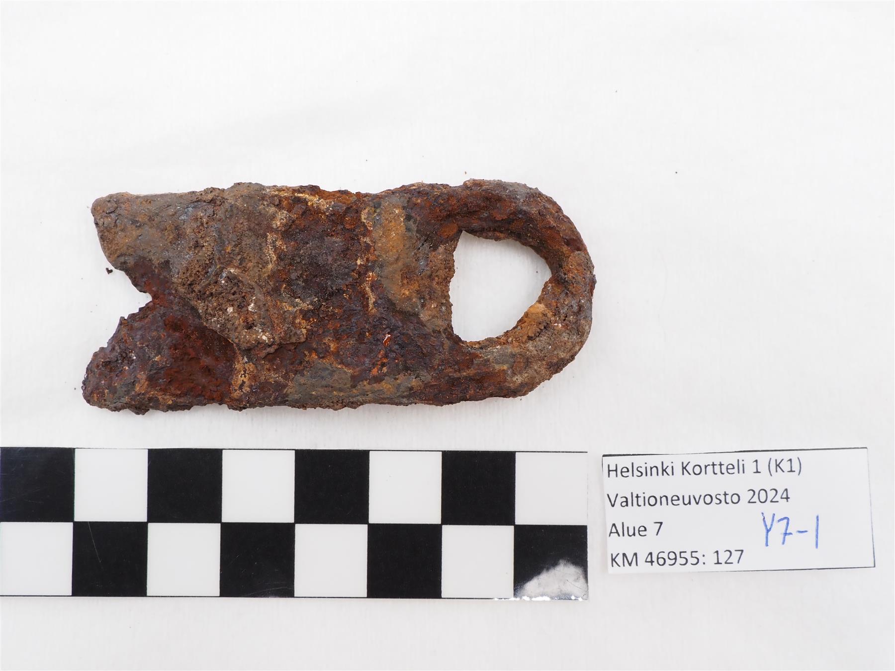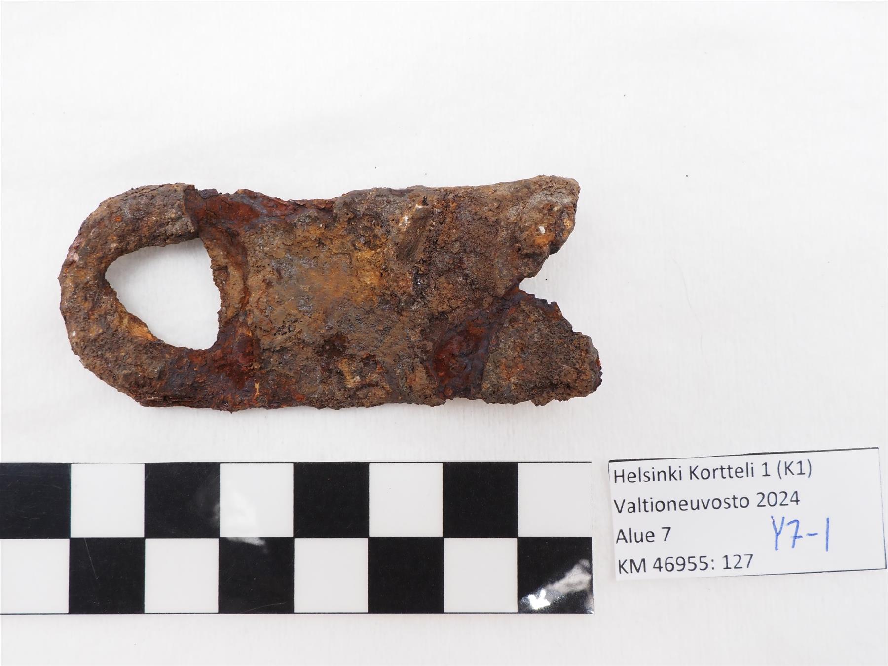 | Pienikokoinen salparauta. Toinen pää pyöristetty. Päässä myös suurikokoinen reikä. | |