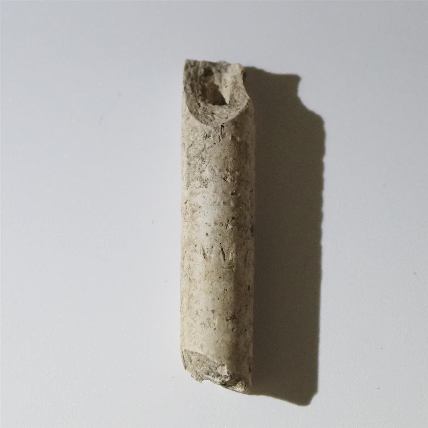 | Liitupiipun varren kappale. Varressa sahalaita- ja pisteviivakoristelua. | |