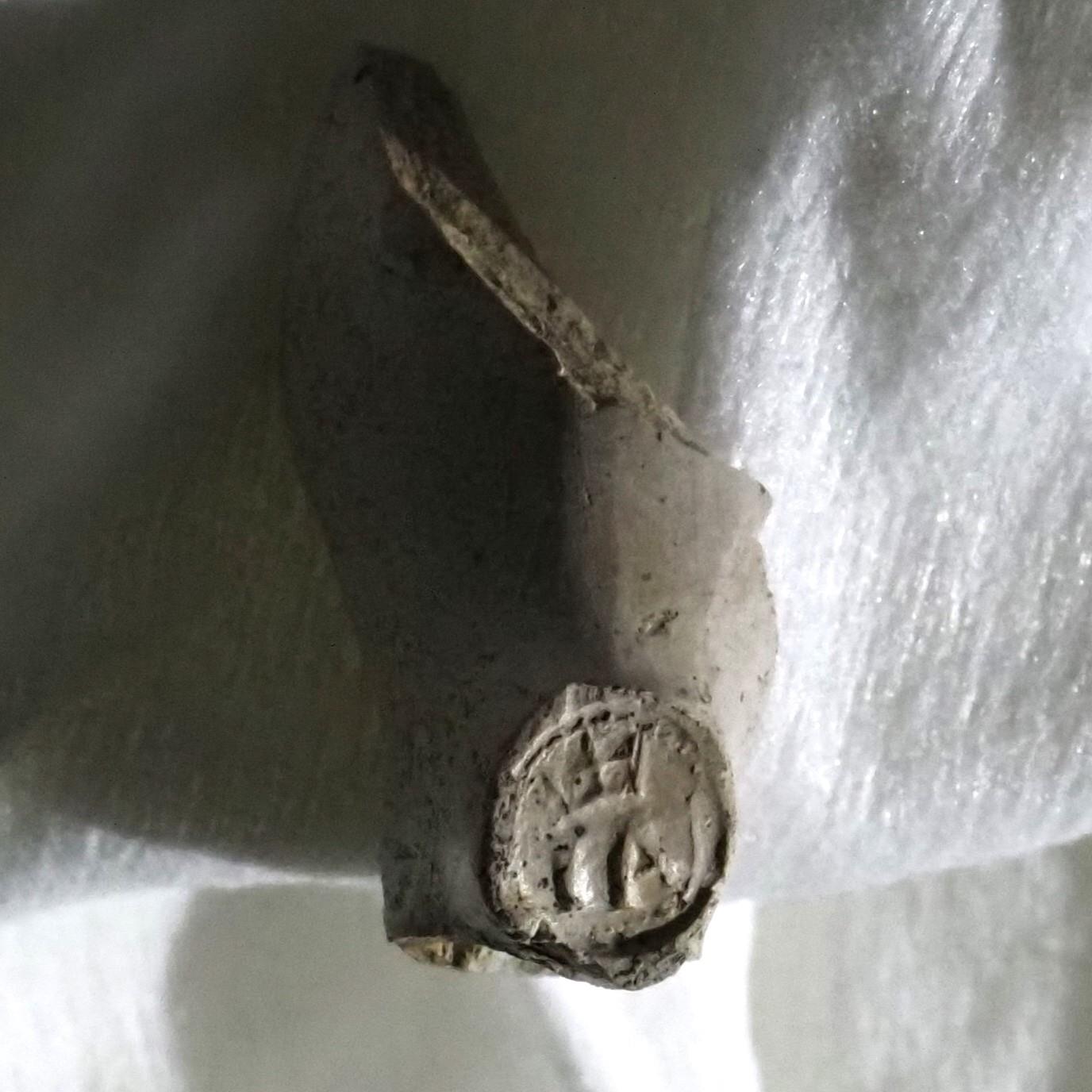 | Liitupiipun kanta. Kannassa leimatut kirjaimet IA, joiden yläpuolella kruunu.