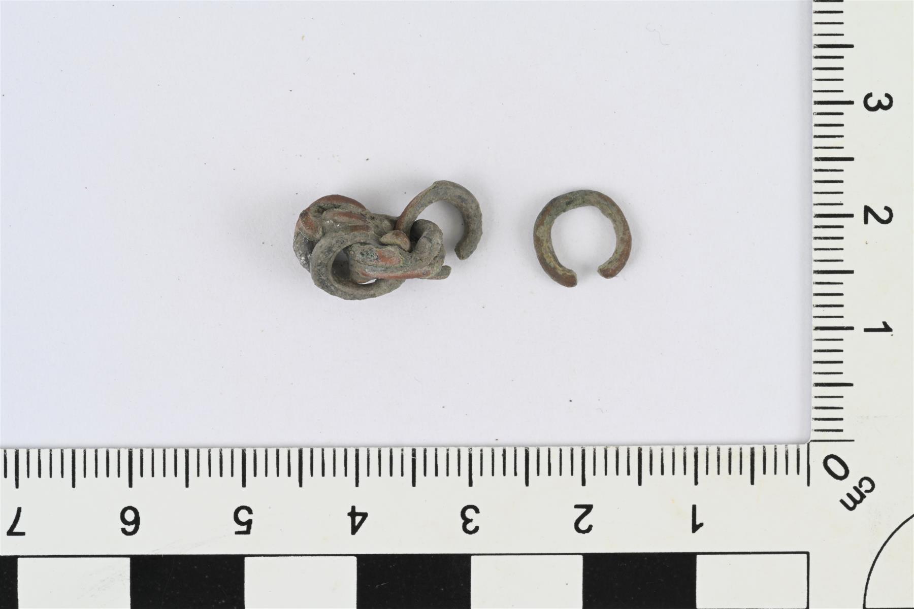 | Ketjun katkelma ja siitä irronnut lenkki. Lenkit pyöreitä ja avonaisia, ja ne ovat ketjussa pareittain. | |