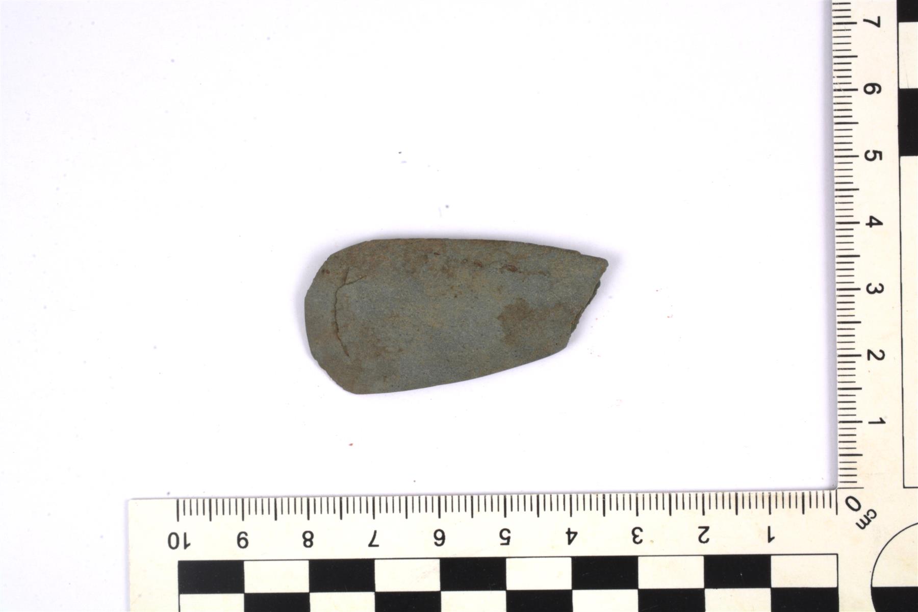 | Hiotun kiviterän katkelma. Mahdollisesti kaapimen tai veitsen osa. | |