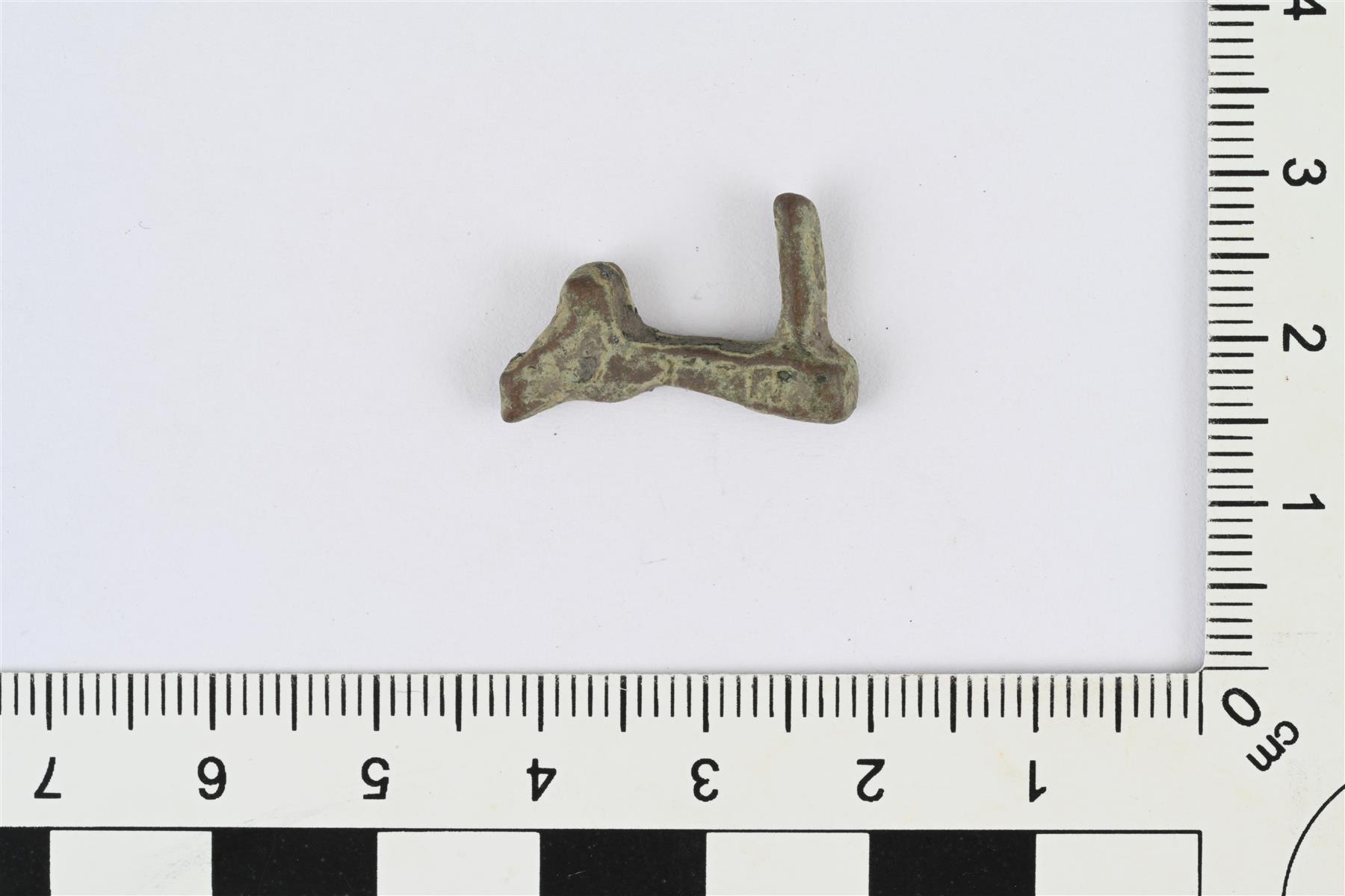 | Puhkonaisen kupariseosesineen, mahdollisesti vyön- tai hihnansoljen katkelma. | |