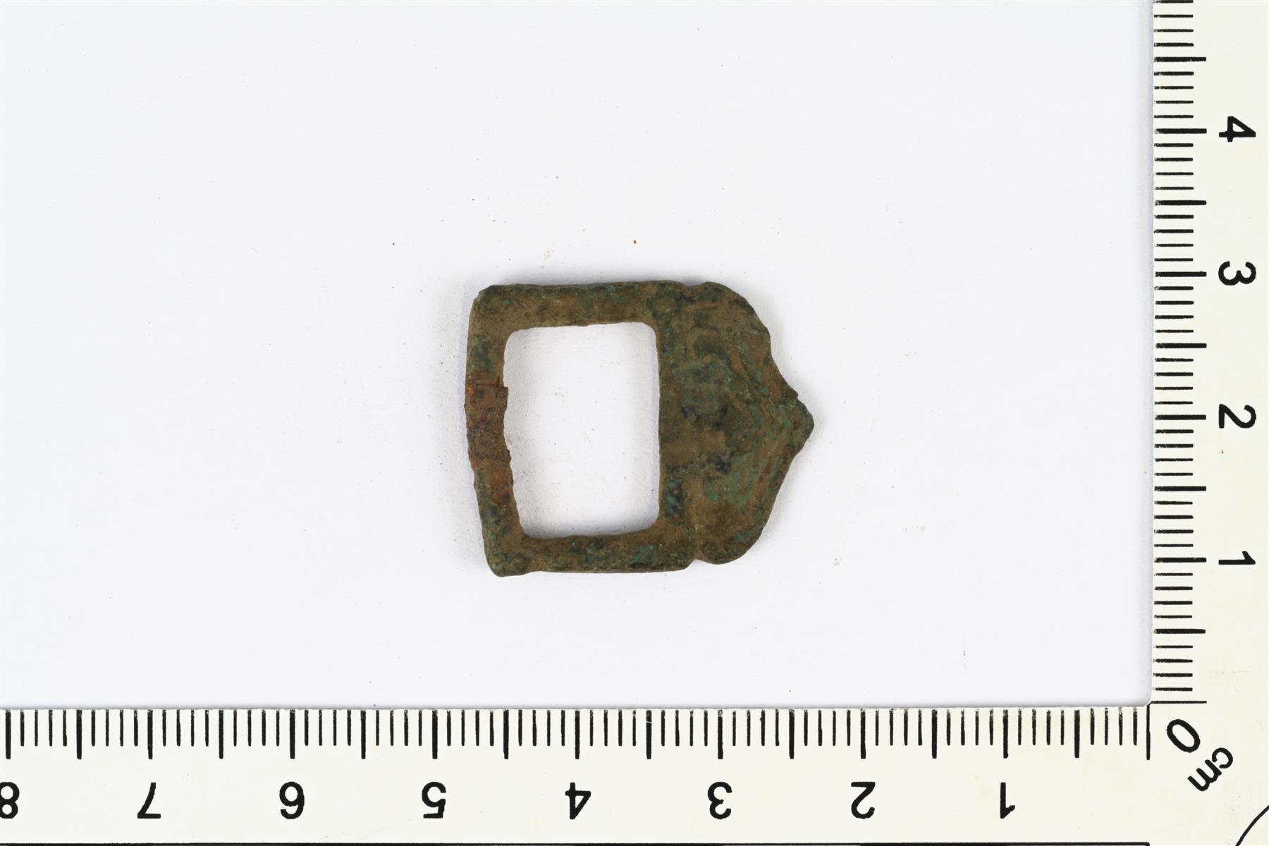 | Pienikokoinen vyönsolki. Etuosa on kolmiomainen. Neula puuttuu. | |