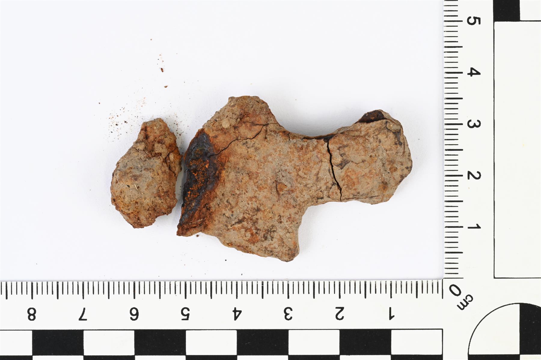 | Pahoin ruostunut rautaesineen katkelma. | |