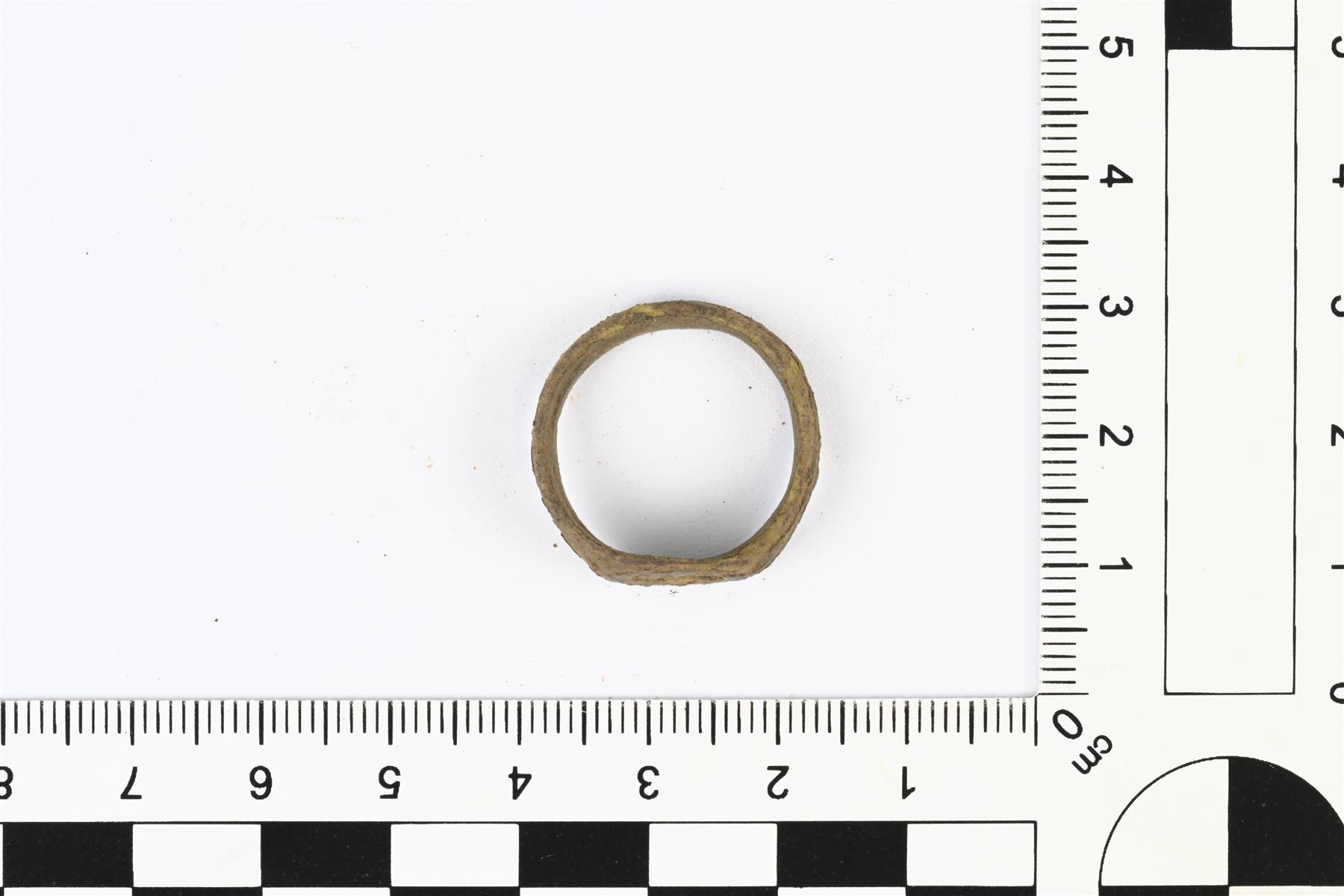 | Melko kulunut Sarvas-sormus. Koristelu on melko kulunut. Sisäpuolella erottuu valinsauma. | |