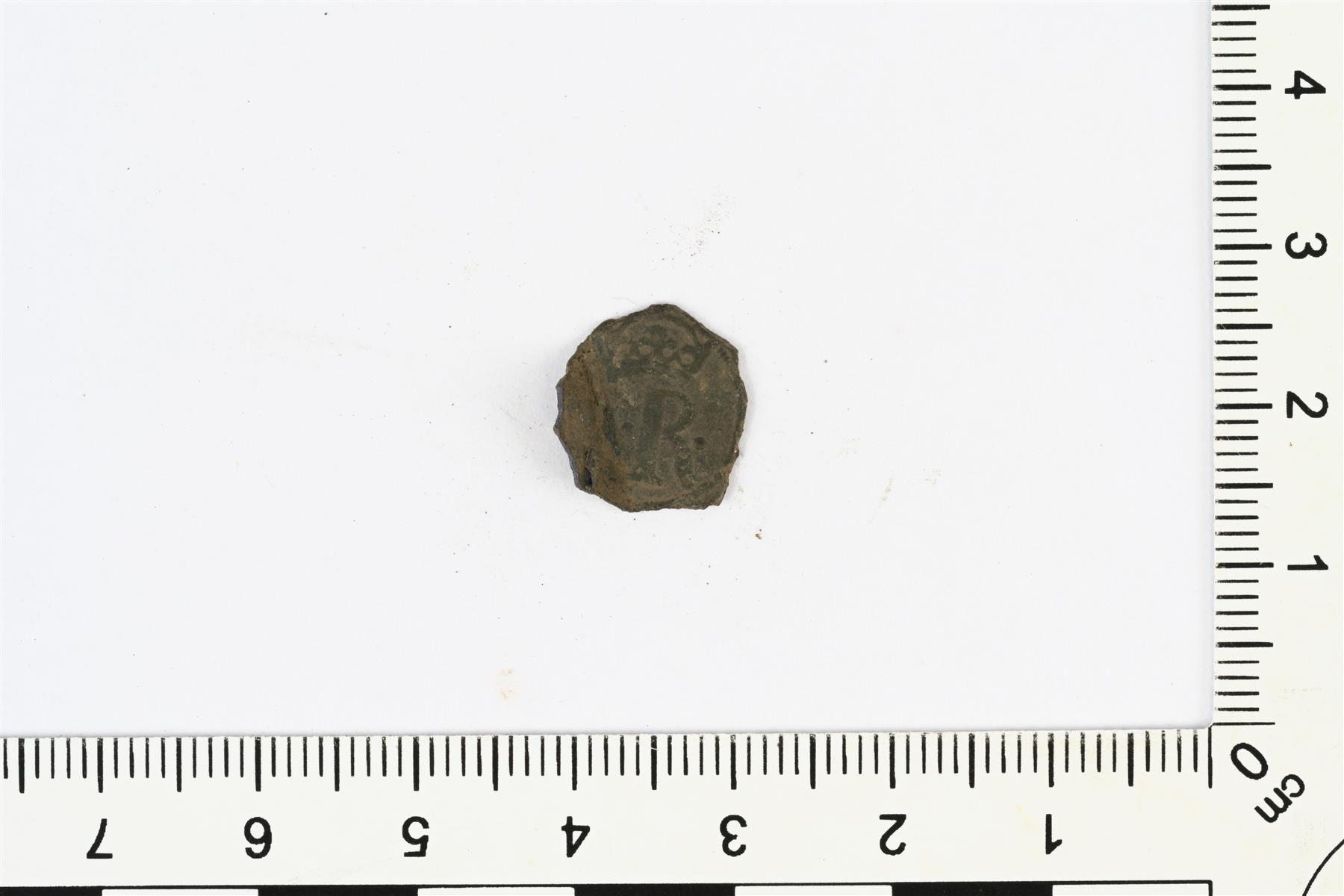 | Juhana III, 1/2 äyriä, Tukholma 1569–1574 (fragmentti, pelkkä keskiosa). | |