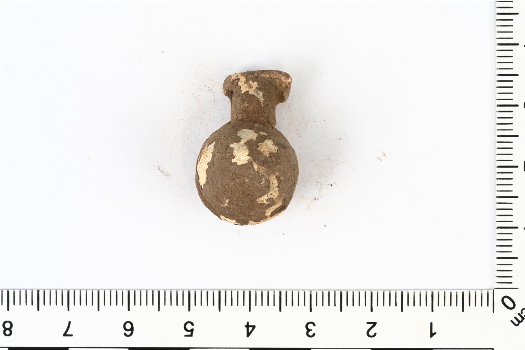 | Lyijyinen musketinkuula. Kyljessä valukanava. | |