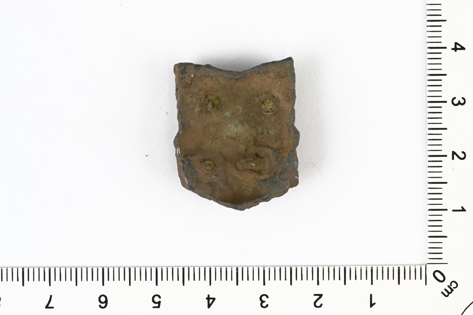 | Reliefikoristeinen vyönhela. Taustapuolella on neljän kiinnitysniitin jäänteet. Samaa muotoa kuin KM 47513: 1. | |